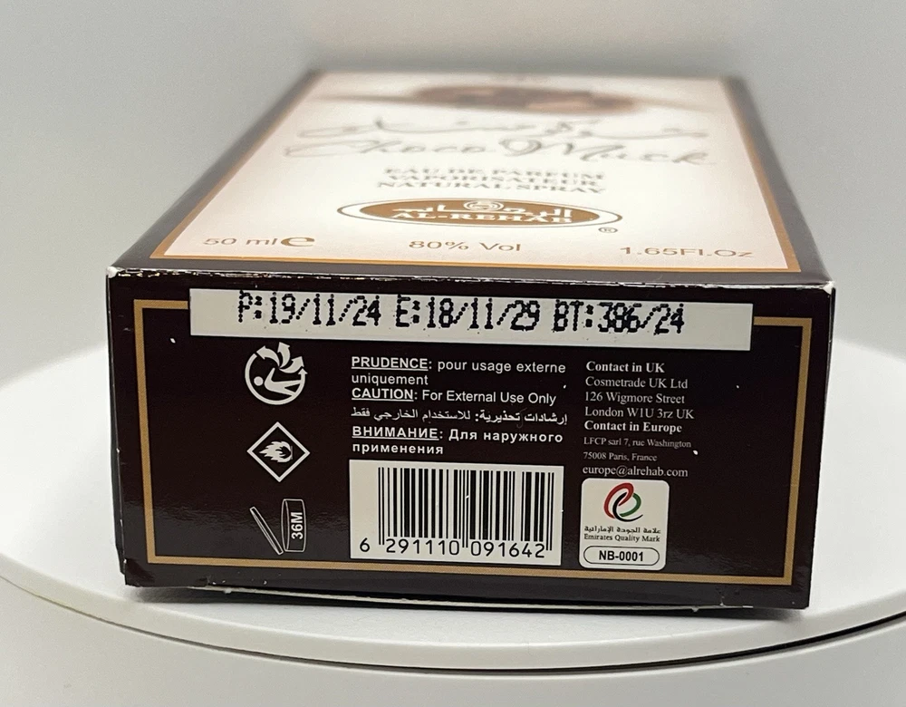 The Choco Musk Arabian Perfume Spray by Al Rehab is a luxurious fragrance with a rich, chocolatey scent. This 50ml spray cologne is perfect for personal use and is sure to leave a lasting impression. Manufactured in Saudi Arabia by Al Rehab, this perfume combines the sweet aroma of chocolate with the exotic notes of musk, creating a unique and captivating scent. Experience the essence of Arabia with this high-quality fragrance from Crown Perfumes USA Seller.