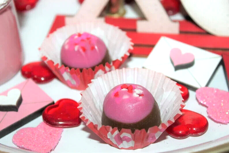 **** SHIPPING IS OFTEN CALCULATED HIGH WHEN PURCHASING MORE THAN 1 ITEM SO FEEL FREE TO MESSAGE ME FOR A SHIPPING QUOTE **** When combining purchases please click on "request total from seller" at checkout and wait for me to send you a invoice with combined shipping. If you are using your phone this option may not be available and if so just message me and I can make you a listing with everything combined and the correct amount on shipping. Thank You ;) *** These are NOT EDIBLE. *** These are my handmade highly scented tarts or melts that are made with a special blend of wax that allows me to add up to 10% more fragrance than most waxes. These are my actual life sized large wax chocolate truffles candy topped with hearts that smell and look so real you'll be amazed they're not! You will receive 12 of them with cute Valentine's paper wrappers. They are scented to the max in CHOCOLATE COVERED CHERRIES too. The aroma of sweet maraschino cherries smothered in milk chocolate, with a dry down of French vanilla. Strong and absolutely delicious smelling! These look great as bowl fillers and look cute displayed with your Valentines decorations too and smell wonderful just sitting out for display without melting them. They also make great gifts so please be sure to check my other listings for terrific smelling candles and tarts to go with your order. Tarts will arrive in a cello bag tied with a homespun bow and labeled so it will be gift ready. International Buyers : Please contact me for shipping quote. Shipping I strive to ship within 48 hours of payment received not including weekends and holidays. I ship USPS Priority or Parcel Post and for the heavier orders I can ship Fed-Ex. I do offer USPS Flat Rate shipping as well. Insurance is the buyers responsibility. I am always happy to combine auctions to save you money on shipping fees and I only change actual shipping costs. Please email with any shipping questions or quotes if needed. Thanks for stopping by! Please do come back again soon~*** Please note I do not accept returns for used merchandise. Must be returned in same condition as received. *** RETURNS ARE ONLY ACCEPTED IF ITEM HAS BEEN MISREPRESENTED