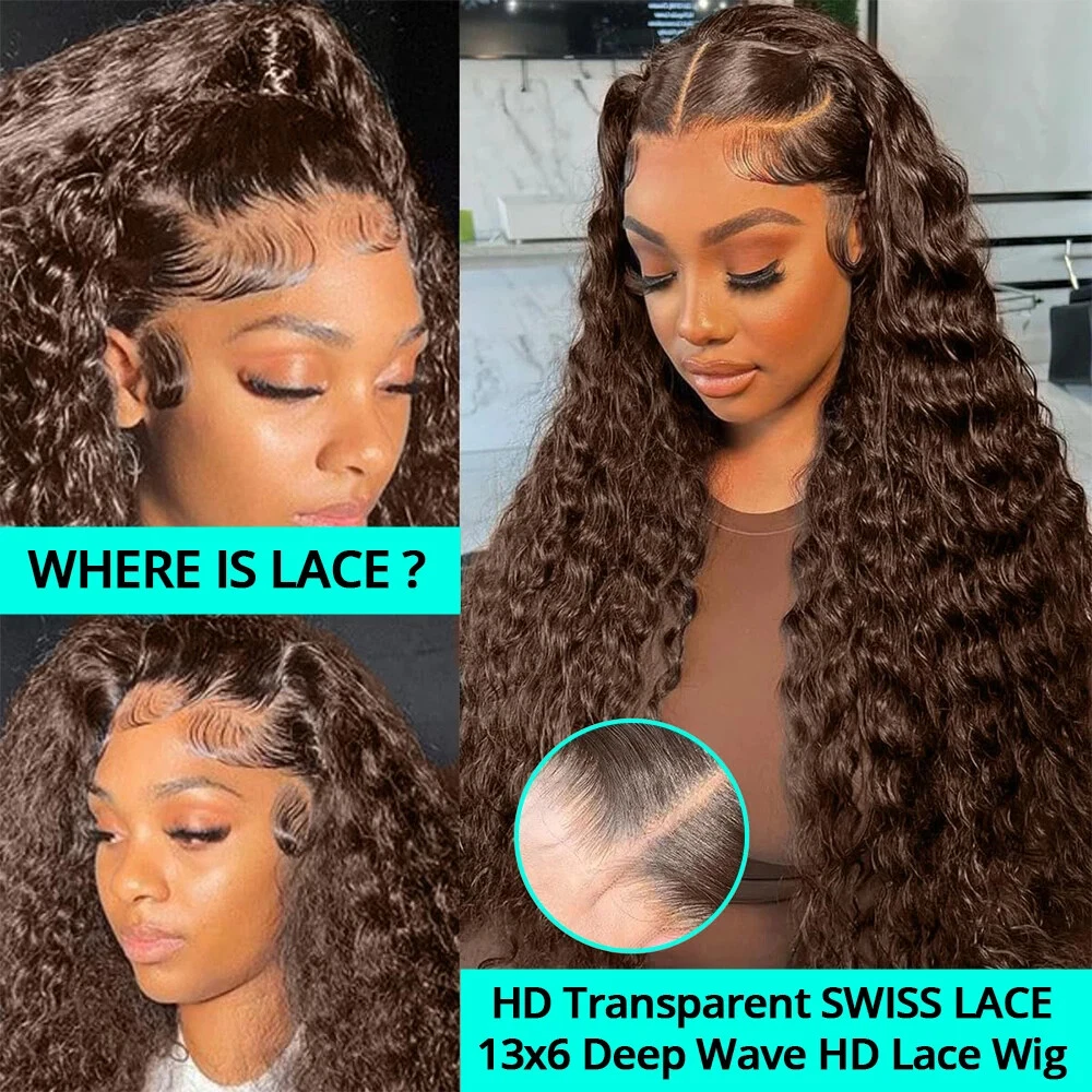 Wig Type 13x6 Chocolate Brown Deep Wave Lace Front Wigs Human Hair Lace Type 13x6 HD Transparent Lace Frontal Wigs Pre Plucked with Baby Hair , Fit All Kinds of Skin Perfectly Wigs Density 200%&250% Density Frontal Wigs Human Hair for Black Women, Full & True to Length, 18- 34 Inches in Stock Wig Hairline Pre Plucked Natural Hairline Around Lace Front Wigs Human Hair Hair Color Chocolate Brown Deep Wave Lace Frontal Human Hair Wigs , Can be Dyed, Bleached, Straightened by Professional Hair Stylist Wig Usage Scenarios Marriage,Travel,Anniversary, Work, Daily Life, Attending Dinners, Outdoor Activities, Swimming, Graduation Chocolate Brown Human Hair Wig Features #4 Chocolate brown deep wave lace front wig human hair, can be dyed, straightened, bleached and restyled as you like, natural and healthy, comfortable against skin durable and reusable