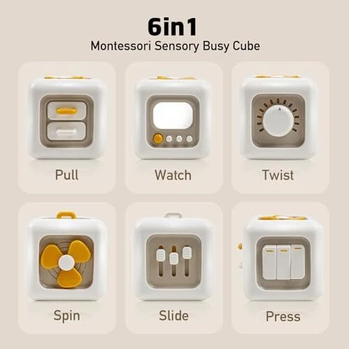 ChooKaChoo Busy Cube Toys for Toddlers Over 1 Year Old, Fine Motor Skills Development, Montessori Busy Board & Sensory Activity Cube for Kids 1-3, Gifts for 12-18 Months Baby 【6-in-1 Busy Board Cube】This cognitive toy integrates 6 learning activities including on-off button, open-close drawer, twist timer, shift regulator, TV mirror and spinning fan. The Ideal Montessori toy for 1-3 year old babies and toddlers. 【Fine Motor Skill Development】This activity cube helps children to better use their hands and fingers to control small objects, so they can: hold, grasp, grip, and pinch. The cube toy also improve children’s hand-eye coordination, problem-solving, and concentration. It helpful for kids with Autism or ADHD. 【Compact for Travel】Portable and super lightweight. It is designed as a compact toy (3.35 inch) for parent to take it to long trip. It is robust and impact-resistant. The 6 games will keep your kids engaged and entertained them for hours. 【100% BPA FREE】This Montessori cube is made by 100% BPA free non-toxic materials. It’s carefully designed with rounded edges for children. Easy to clean by wiping with mild cloth. 【Adorable and Perfect gift】There is no better gift than some peaceful time for new parents. The Montessori toy can entertain the loved little one and improve their find motor skill with fun. 【6-in-1 Busy Board Cube】This cognitive toy integrates 6 learning activities including on-off button, open-close drawer, twist timer, shift regulator, TV mirror and spinning fan. The Ideal Montessori toy for 1-3 year old babies and toddlers. 【Fine Motor Skill Development】This activity cube helps children to better use their hands and fingers to control small objects, so they can: hold, grasp, grip, and pinch. The cube toy also improve children’s hand-eye coordination, problem-solving, and concentration. It helpful for kids with Autism or ADHD. 【Compact for Travel】Portable and super lightweight. It is designed as a compact toy (3.35 inch) for parent to take it to long trip. It is robust and impact-resistant. The 6 games will keep your kids engaged and entertained them for hours. 【100% BPA FREE】This Montessori cube is made by 100% BPA free non-toxic materials. It’s carefully designed with rounded edges for children. Easy to clean by wiping with mild cloth. 【Adorable and Perfect gift】There is no better gift than some peaceful time for new parents. The Montessori toy can entertain the loved little one and improve their find motor skill with fun. Shipping from the USA All of our products are shipped from the USA, ensuring quick delivery to your destination. Payment We offer the following payment methods: PayPal, credit card, bank transfer, and eBay's secure payment system. Free Shipping & Free Returns Shipping within the USA is FREE. Additionally, any return is absolutely free for you. Risk-Free Purchase You have the option to return an item within 30 days without any justification. We cover the return shipping costs! Fast Shipping We ship immediately upon receipt of payment. Generally, the package is delivered within 2-3 days in the USA. If it takes longer, we will contact you. Quality and Costs Made in Europe, USA, China No customs fees or additional charges Total satisfaction guarantee Invoice with declared VAT available upon request in .pdf format Feedback Your feedback is very important to us. After you pay for your purchase, you will automatically receive positive feedback from us.
