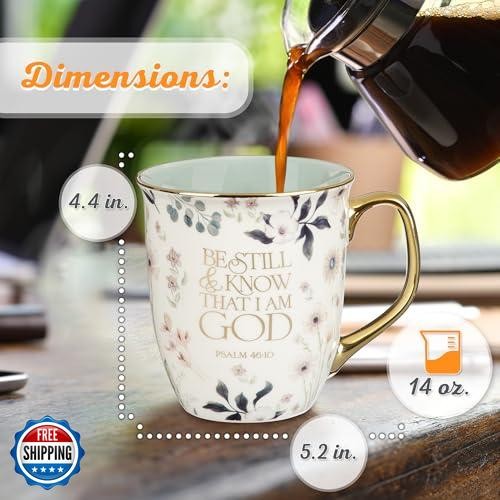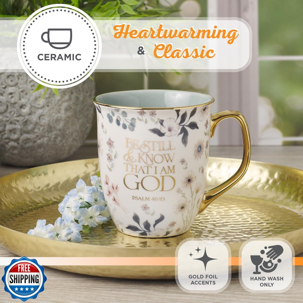 Christian Art Gifts Large Ceramic Inspirational Scripture Coffee and Tea Mug for Women: Be Still and Know Bible Verse Psalm, Cute Novelty Non-toxic Golden Beverage Cup, White and Light Teal Floral, 14 oz. Features Durable, Clean, Non-toxic, Cadmium & Lead-free Glazed Design: Made of quality ceramic, this beautiful beverage cup ensures a pure, satisfying drinking experience as you enjoy your favorite hot or cold liquid and drink and reflect on its message of encouragement from the Bible. Pair it with your favorite mug warmer. Sturdy, Quality Easy-hold Handle & Attractive Chic Style: The elegant mug features a pretty, light teal interior, beautiful golden rim, and durable, firm easy to hold gold handle. The soft white exterior displays a beautiful and cheerful painted blend of blue, teal, purple pink, & green leafy florals wrapping around the entire mug. Words of Inspiration Inspired from Scripture: The beverage cup features a sentiment from beloved Bible verse Psalm 46:10 in an elegant, gold foil text on the front: "Be still & know that I am God". Be a blessing and encouragement to a loved one, relative, mom, grandma, colleague, or friend by gifting a motivational piece of religious drinkware packaged in a sturdy & protective easy to wrap gift box. Beautiful Faith-inspired Religious Gifts for Those You Love: This unique, whimsical mug makes an ideal present for a loved one who enjoys everything from cocoa, to espresso, chai lattes, and more! Great for hot and cold drinks, the mug is a perfect present for any special occasion including Easter, Mother's Day, birthdays, Grandparent's Day, Christmas and more. Not microwave safe due to elegant foil. Hand wash is recommended. Share Light. Bring Joy: Christian Art Gifts offers a wide variety of Scripture print items for any and all special occasions and holidays including Christmas, birthdays, graduations, Mother's & Father's Day and more. From Bible Covers, Coloring Books, Journaling Bibles, Journals, Planners, and Devotional Books, the company strives to bring high quality products with a special message of hope and encouragement on each and every one. Shipping Free & Fast Shipping: We offer free shipping to most of the USA with a normal delivery time of 3-7 days. However, due to the current situation, additional delivery time (up to 3 weeks) may be required for some items. Alternative Carriers: We may use alternative carriers (e.g., USPS, FedEx, UPS) to ensure your package arrives safely and on time. Due to the use of multiple carriers, we are unable to provide a tracking number automatically. Handling Time: Orders are processed and shipped within 1-2 business days of receiving cleared payment. Shipping Restrictions: Shipping to Alaska, Hawaii, Puerto Rico, Guam, and other US territories may incur shipping charges or delivery restrictions. Please contact us before ordering, or your order can be refunded/cancelled. State Restrictions: Certain items may not be shipped to California due to state regulations. Contact for Tracking Updates: If you require tracking updates or have any concerns about the delivery of your order, please feel free to contact us, and we will be happy to assist you. Return Policy 30-Day Hassle-Free Returns: If you are not completely satisfied with your purchase, you can return the item for free within 30 days of receiving it for a full refund or exchange. Easy Return Process: Contact us, and we will provide you with a prepaid return shipping label and detailed instructions. No Restocking Fee: There are no restocking fees for returns. However, the buyer is responsible for return shipping costs if the return is not due to a seller"s error. Refund Processing: Refunds will be processed within 1 business day of receiving the returned item in its original condition. Feedback Your feedback is extremely important to us. We strive to provide the best products and customer service possible. If you are satisfied with your purchase, please take a moment to leave us a positive review. If you have any concerns or issues with your order, please contact us before leaving negative feedback. We are committed to resolving any problems and ensuring your satisfaction. Contact Us If you have any questions or concerns, please feel free to reach out to our customer support team. You can contact us through the eBay messaging system. We are available Monday to Friday, 9:00 am to 5:00 pm EST, and we will do our best to respond to your inquiry within 24 hours. Thank you for supporting our small family business!