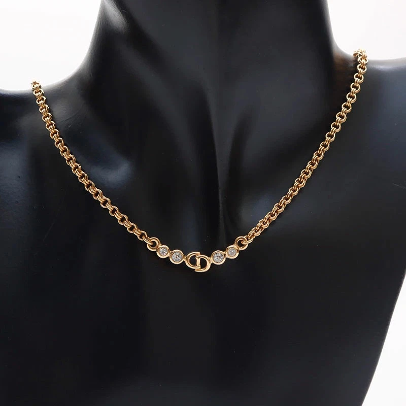 $ 36.96Vintage Dior Rhinestone Logo Pendant Silver Plated Necklace