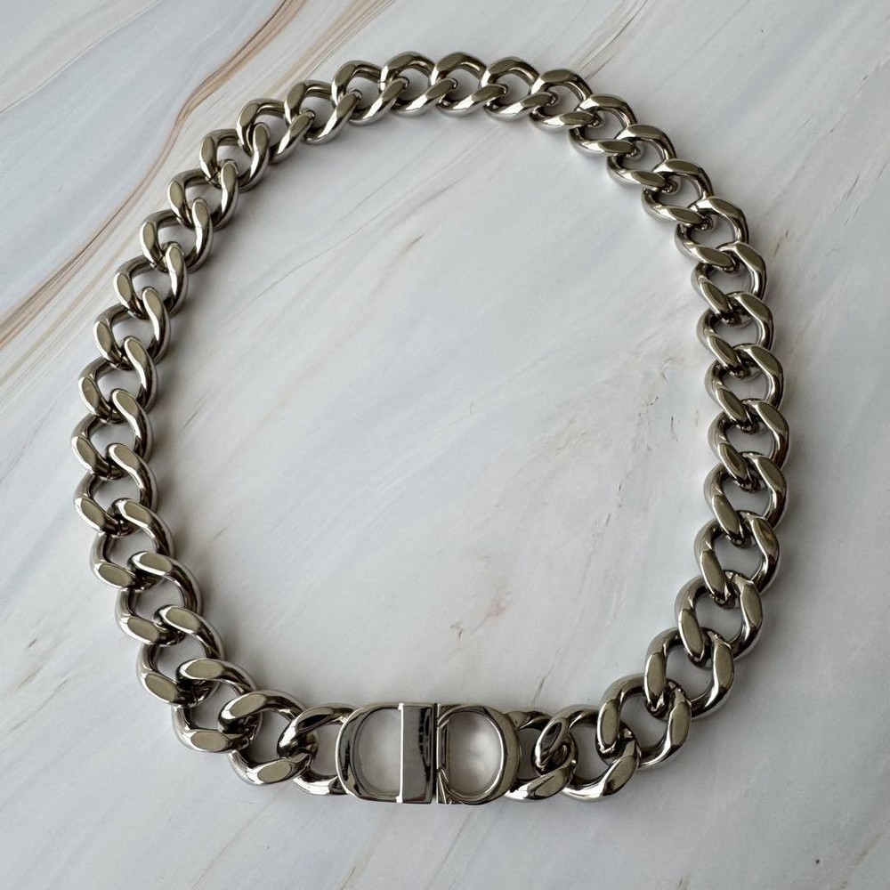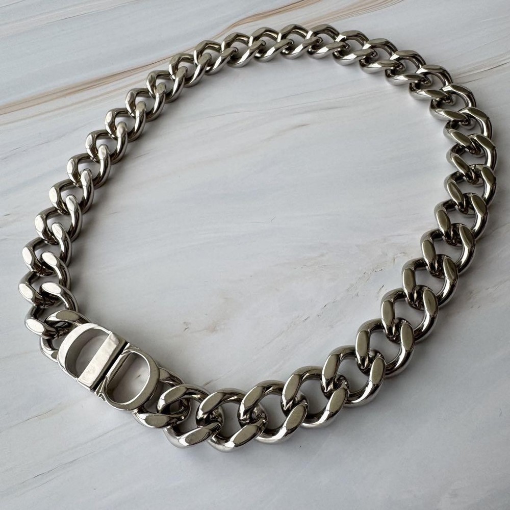 $ 635.9Christian Dior Rare Cd Diamond Chain Link Metal Necklace
