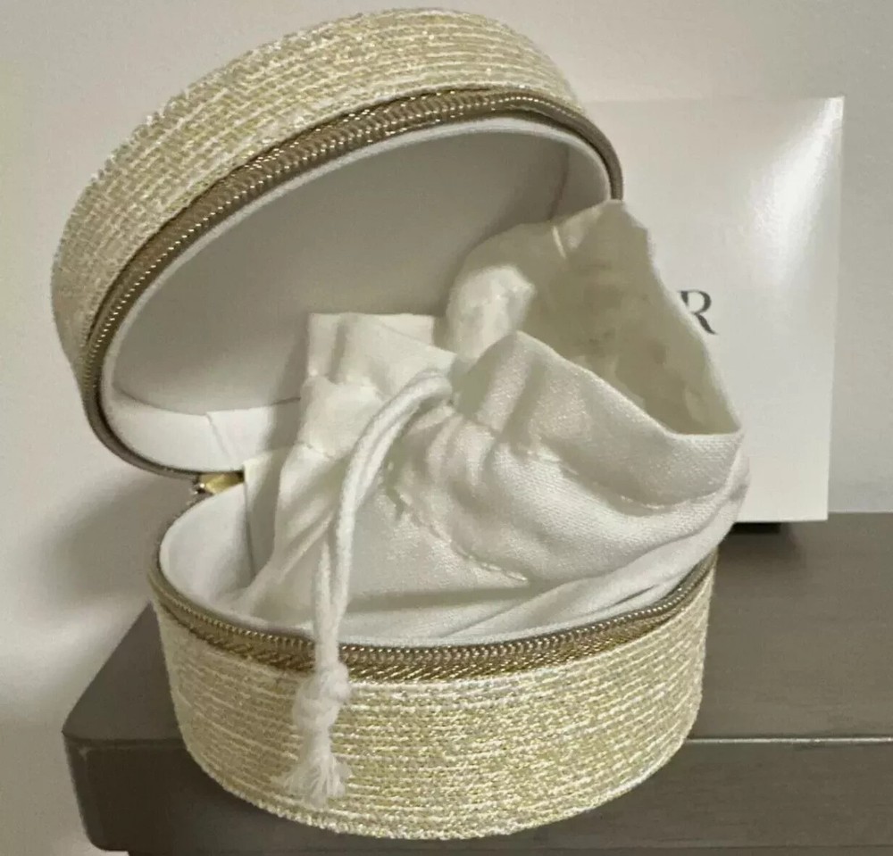 Christian Dior Gold Trousse Round Cosmetic Jewelry Box Pouch New