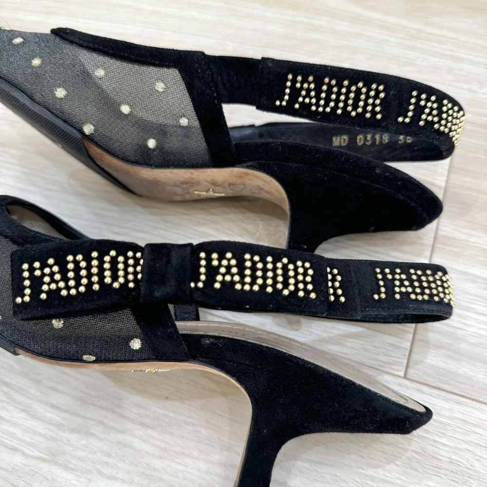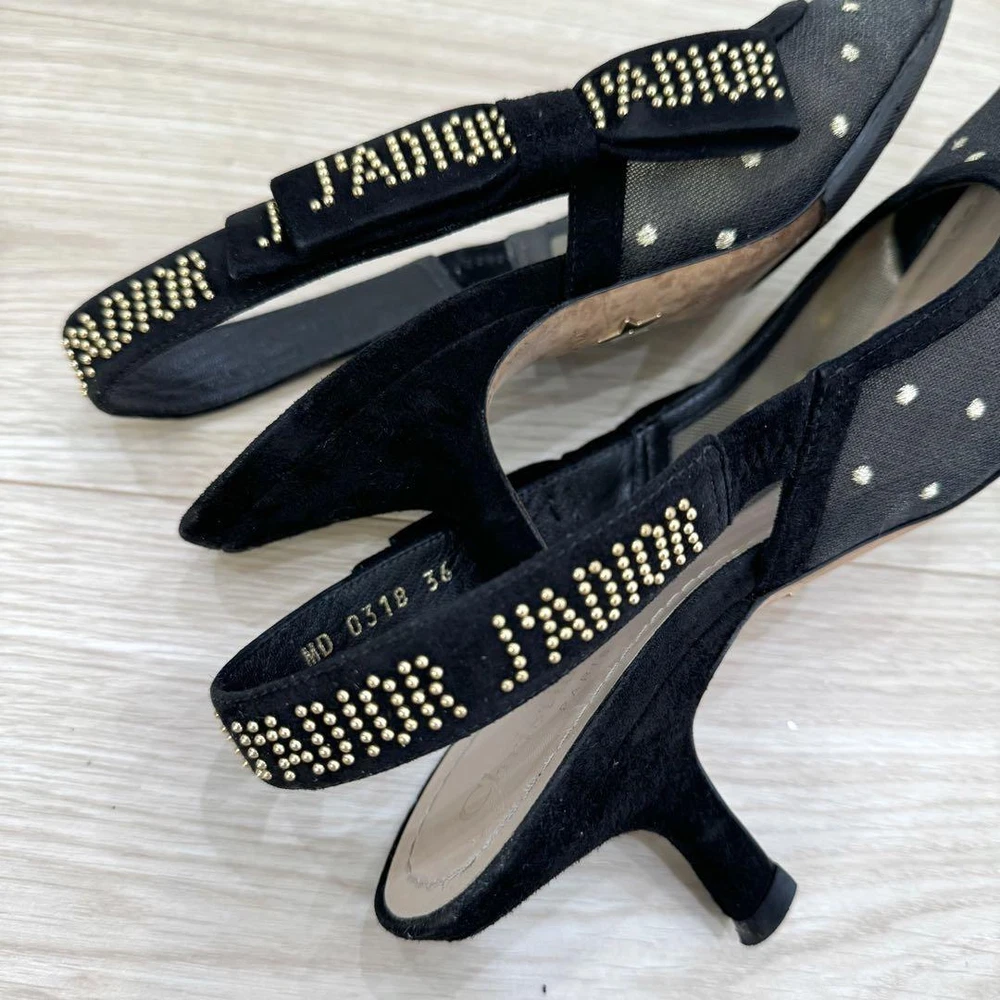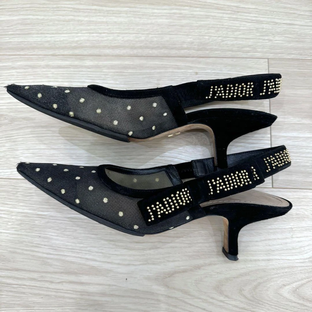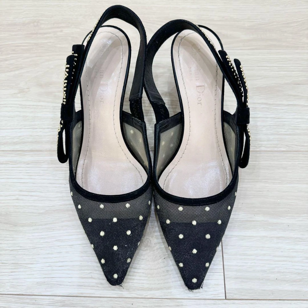 Christian Dior Shoes Pumps Heel J'ADIOR Dot Slingback EU 36 US 6 Black Used Ex+ Description Christian Dior J'ADIOR Slingback Pumps with Polka Dots Brand: Christian Dior Size: 36 (Approximately 23 cm or 9.1 inches) Color: Black Material: Tulle with Velvet Polka Dots Condition: - Fraying at the toe area - Sole branding faded - Sole has been resoled All of Items Will be Shipped From Japan. Please check with the image. About the condition Damages such as stains, scuffs, and scratches are listed only if they are noticeable. Please understand that this is a used item, so there may be some inconspicuous scuffs or signs of use even if they are not listed. Please note that there may be unnoticeable scuffs and scratches on the item even if they are not listed. Please check the images for details of the condition. Note: This is a used item. We have tried to describe the condition of the item with detailed pictures and text as much as possible, but please understand that there may be some things that we have overlooked because it is a used item. Please note that measurements are taken by our company, so please understand that there may be some errors. If there is no special description about the accessories, only this item will be included. Colors may look different from the actual item depending on your monitor and shooting environment. Payment Please pay within 7 days of first purchase. ebay payments We can not separate invoice. Please understand. Shipping&Handling ■Speedy Shipping Shipped by DHL, FedEx, or Japan Post with tracking number. *If your location is designated as remote, additional shipping charges may apply. (Some areas such as Australia, Canada, Chile, and remote areas of the U.S.) I will pack it carefully. ■Economy Shipping (Japan Post) Economy Airmail 15-40 days without tracking Additional shipping fees may apply for countries/areas where delivery by Japan Post is not available. Handling Time Please check the categories of Shipping and payments. International Buyers - Please Note: Import duties, taxes, and charges are not included in the item price or shipping cost. These charges are the buyer's responsibility. Please check with your country's customs office to determine what these additional costs will be prior to bidding or buying. If you have any questions about products, shipping, etc., please do not hesitate to contact us by message. Thank you for your understanding.