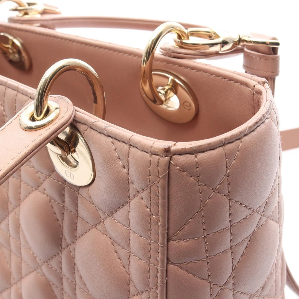 Christian Dior LADY DIOR Cannage tote crossbody shoulder Handbag leather Pink