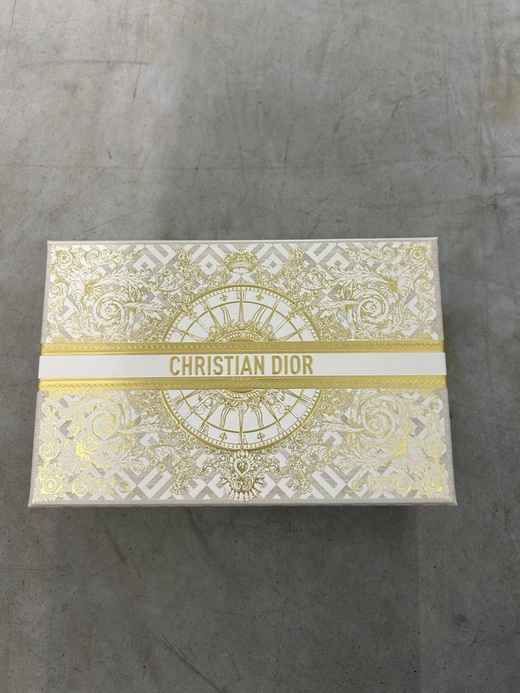 Christian Dior box and bag. I got it with a christmas present but don’t need the bags and box it came in so figured someone else could use it for storage/room decor. straps on bag are ribbon and can be tied, box has a lid and is sturdy