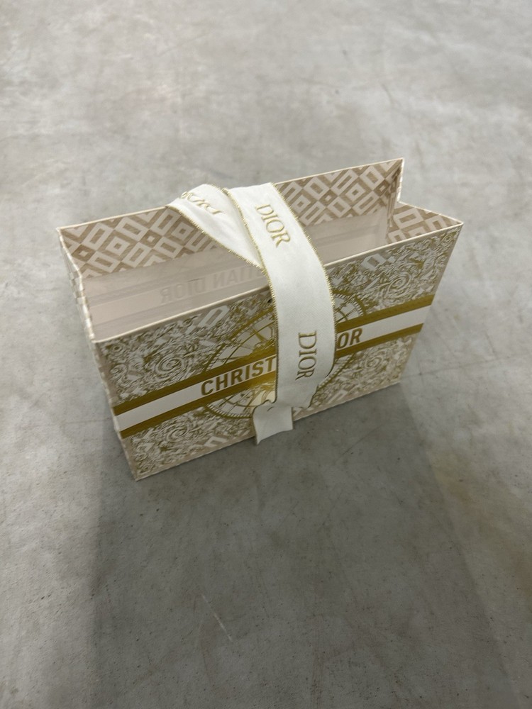 This Dior bag and box set is perfect for stylish storage or decor! The bag's ribbon straps add a chic touch, and the sturdy box with a lid keeps items neatly organized. Great for gifting or keeping small treasures—love the elegant design!