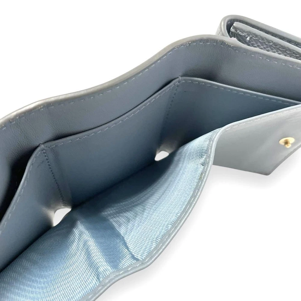 Absolutely love this wallet! The light blue color is stunning and the quality feels luxurious. Arrived in perfect condition and looks exactly as pictured. Very happy with my purchase!