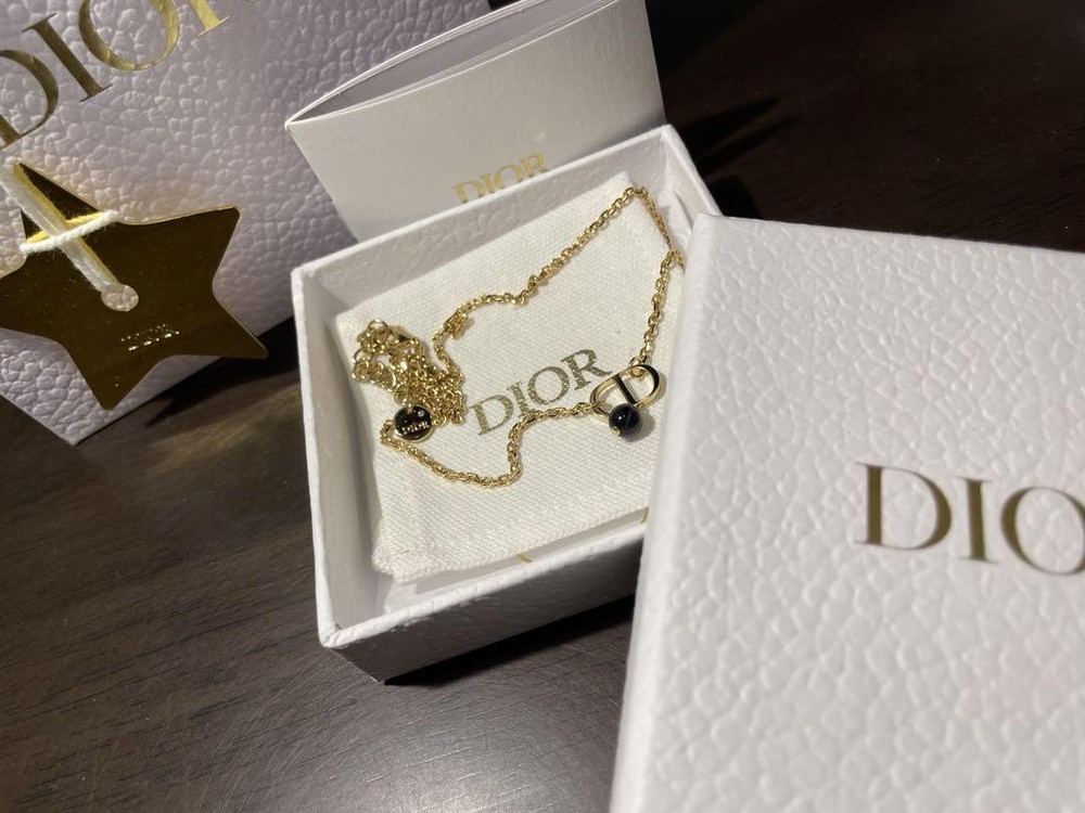 Christian Dior Petit CD Necklace in Gold and Black with Adjustable Chain
