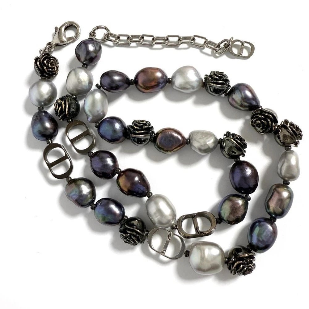 Christian Dior Rare Men'S Pendant Necklace Roses Fake Pearl