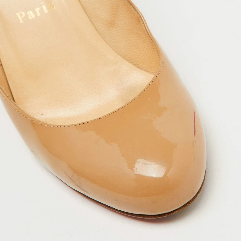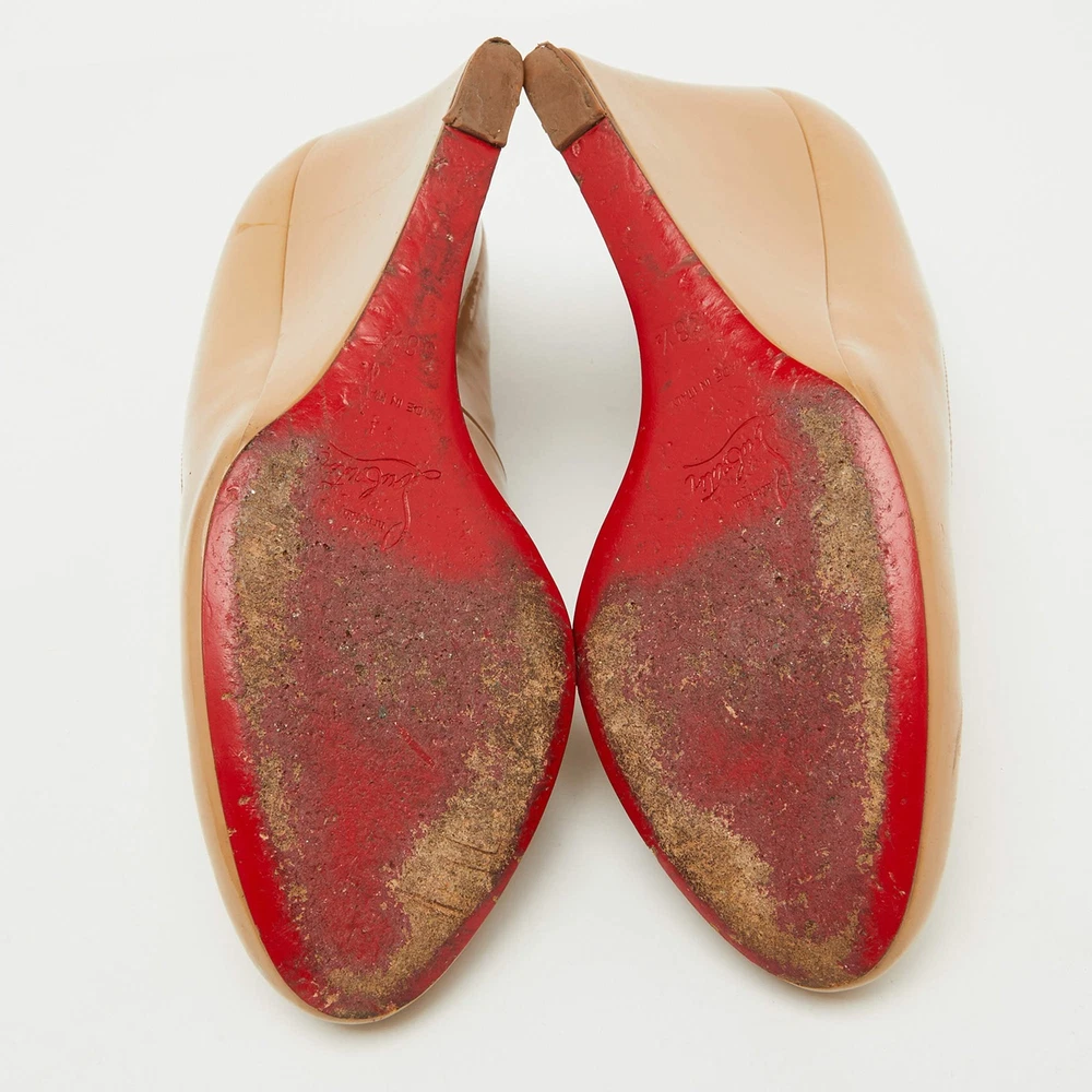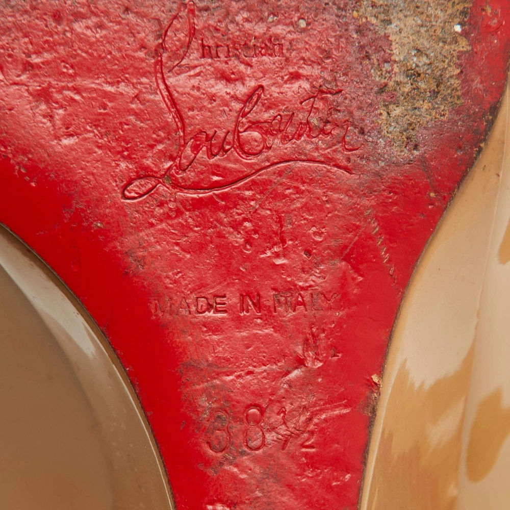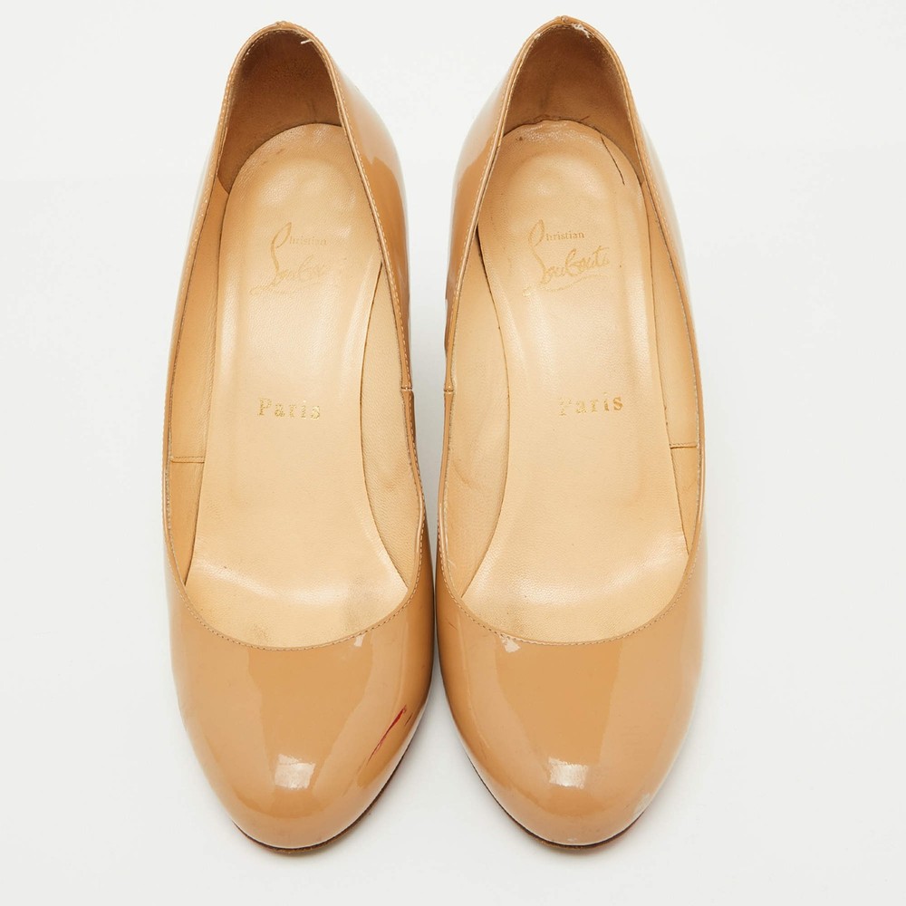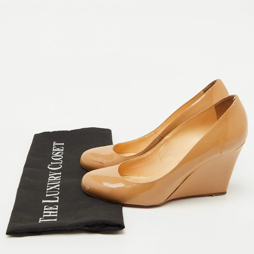 Our eBay Store About Us Contact Us Add to Favorite Sellers Christian Louboutin Beige Patent Leather RonRon Zeppa Wedge Pumps Size 385 Make a statement with these Christian Louboutin pumps for women. Impeccably crafted, these chic heels offer both fashion and comfort, elevating your look with each graceful step. Product Details Brand Christian Louboutin Color Beige Includes The Luxury Closet Packaging Outsole Length 23 cm Outsole Width 8 cm Size 38.5 Certified by The Luxury Closet This item has gone through a detailed authentication process overseen by our experts. We offer a lifetime guarantee of authenticity on all our items. How We Check The in-house team of experts at The Luxury Closet is highly trained to verify the authenticity and the condition of the luxury products. They ensure that only 100% authentic items are put on sale.The evaluation process is unique with its own mix of assessment criteria and differs according to the category. Each item is evaluated based on the following combination of hallmarks, hardware, stitching, symmetry, material, craftsmanship, stamping, codes, hologram stickers, and packaging. Our authenticators also check if the items have been modified or amended (e.g., aftermarket diamonds, replaced batteries, repaired bags, etc.) International Buyers Import duties, taxes and charges are not included in the item price. These charges are the buyers responsibility. Please check with your country’s customs office to determine what these additional cost will be prior to buying.