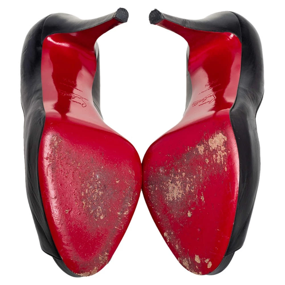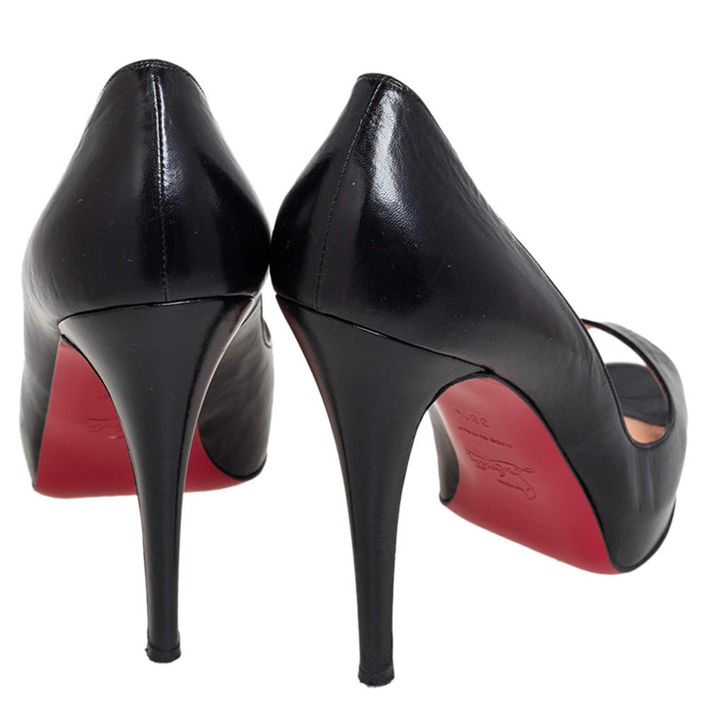 Our eBay Store About Us Contact Us Add to Favorite Sellers Christian Louboutin Black Leather Very Prive Peep Toe Pumps Size 385 This pair of New Very Prive pumps by Christian Louboutin is a timeless classic. Step out in style while flaunting these leather shoes that come in classic black to be ideal for all occasions. They feature peep toes, platforms, and 12 cm heels. Product Details Brand Christian Louboutin Color Black Includes Original Dustbag Size 38.5 Outsole Length 21 cm Outsole Width 7.5 cm Certified by The Luxury Closet This item has gone through a detailed authentication process overseen by our experts. We offer a lifetime guarantee of authenticity on all our items. How We Check The in-house team of experts at The Luxury Closet is highly trained to verify the authenticity and the condition of the luxury products. They ensure that only 100% authentic items are put on sale.The evaluation process is unique with its own mix of assessment criteria and differs according to the category. Each item is evaluated based on the following combination of hallmarks, hardware, stitching, symmetry, material, craftsmanship, stamping, codes, hologram stickers, and packaging. Our authenticators also check if the items have been modified or amended (e.g., aftermarket diamonds, replaced batteries, repaired bags, etc.) International Buyers Import duties, taxes and charges are not included in the item price. These charges are the buyers responsibility. Please check with your country’s customs office to determine what these additional cost will be prior to buying.