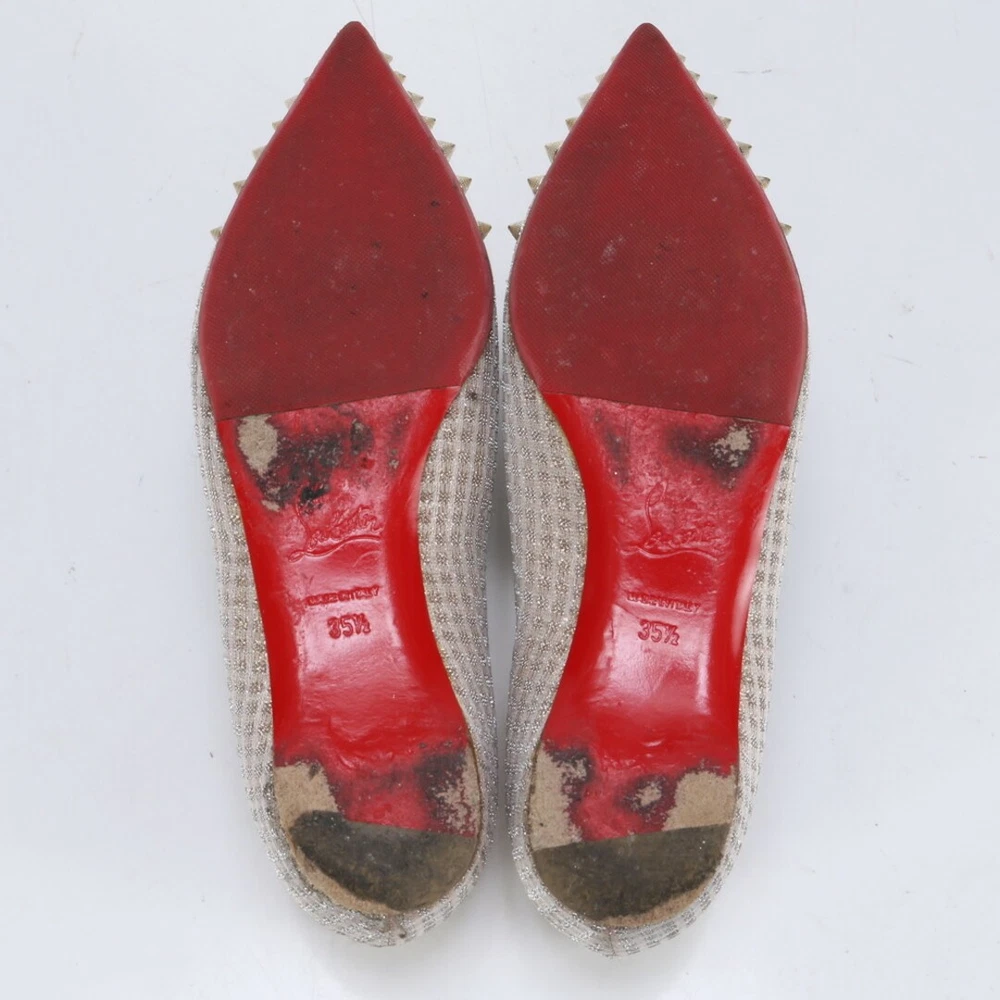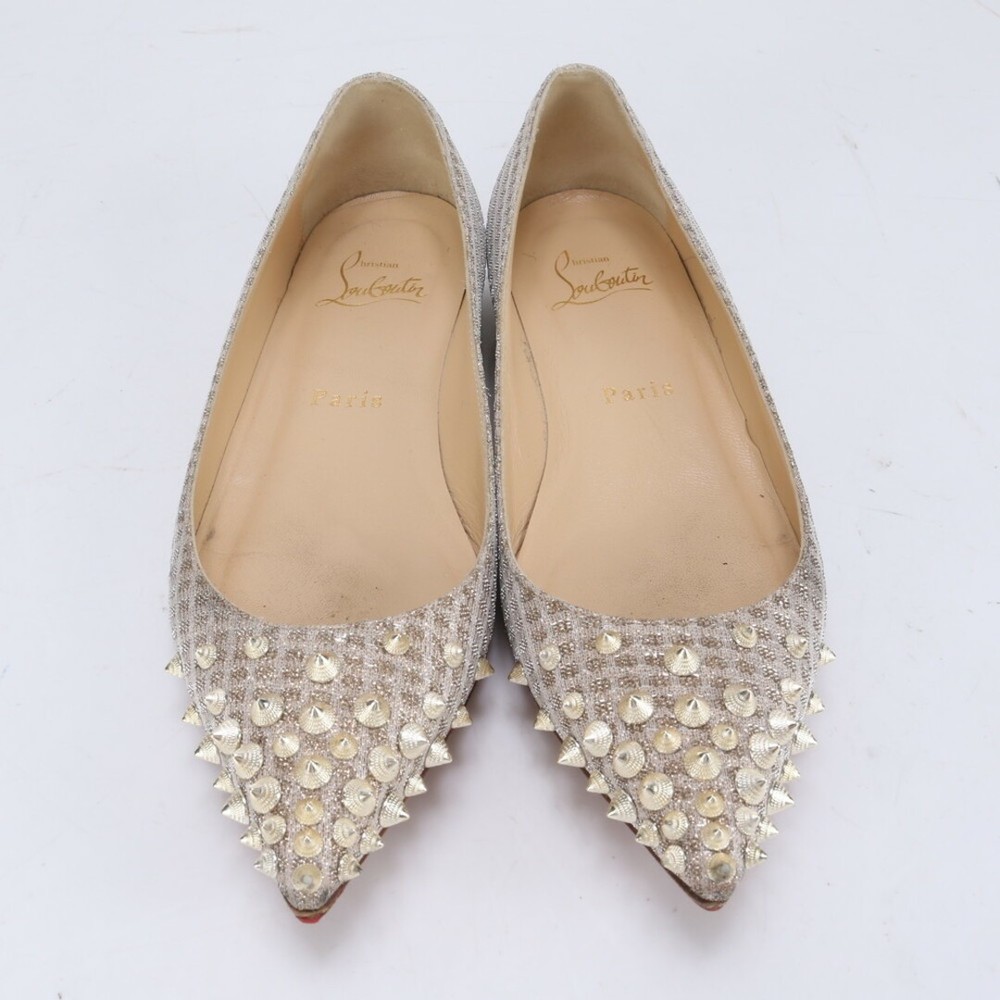 Christian Louboutin Spiked Stud Ballerina Pumps 35.5EU Black Women Key Features **Product Description:** - Brand: Christian Louboutin - Product Type: Women's Shoes - Model: Not specified - Size: EU 35 1/2 (JP 22.5 cm) - Length: Approximately 26 cm - Width: Approximately 8 cm - Color: Champagne Gold - Country of Manufacture: Italy - Condition: with minor scuffs and stains; sold as-is. **Detailed Features:** - Includes accessories shown in images. - Condition ranks: Outer A/B, Inner A/B. - Please note that the item may have some wear due to previous use. **Item Specifics:** - Brand: Christian Louboutin - Size: EU 35 1/2 (JP 22.5 cm) - Color: Champagne Gold - Condition: - Country of Manufacture: Italy Specifications Brand Christian Louboutin Department Women EU Shoe Size 35.5EU Product Description This is a used item.We will ship the product in the photo.If you have any questions about the condition, etc., please feel free to contact our store. Shipping We ship all items with tracking numbers. We decide the delivery company depending on the area you live in. If you wish to use a freight car, please make sure to contact us in advance. Depending on your area, delivery fee to the remote area may be charged separately. In that case, additional charges may apply. If you are concerned, please let me know the area before purchasing. Depending on your area, you may be charged by your local shipping company. There is also a problem with the local shipping company, so I recommend you to check beforehand. International Buyers - Please Note: Import duties, taxes, and charges are not included in the item price or shipping cost. These charges are the buyer's responsibility. Please check with your country's customs office to determine what these additional costs will be prior to bidding or buying. Please Note: Consoles and game consoles are products for Japan. All displays are in Japanese. Only Japanese software may be available. Please check if it is available in your country before purchasing. Electrical Appliances: AC 100 For 100 V electrical appliances used in Japan, a transformer may be required for use in your country. Please confirm before purchase or feel free to contact us if you have any questions. About returns Points to note when returning items. ●Unopened. ●unused. The inquiry must be made within the due date. If you have any questions, please feel free to ask. We will always respond politely and sincerely.