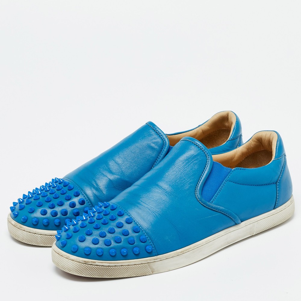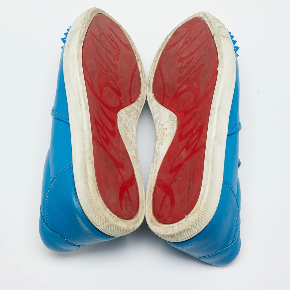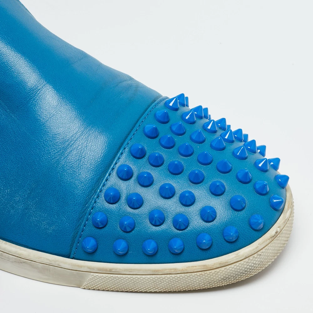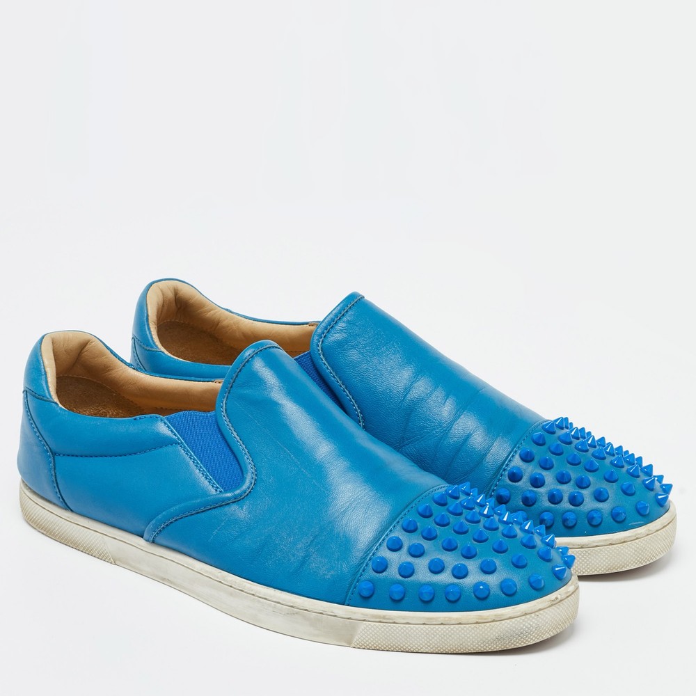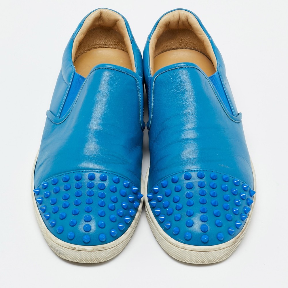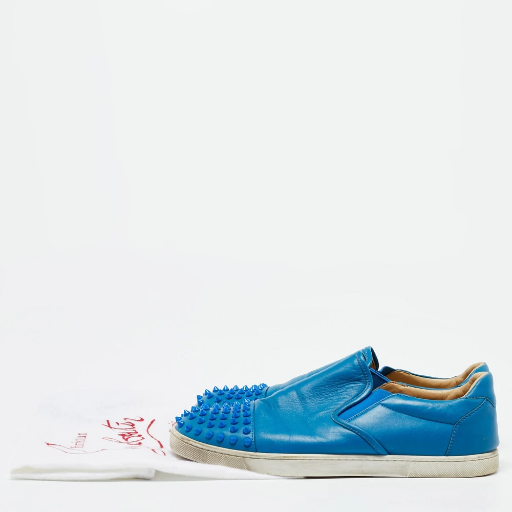 Christian Louboutin Blue Leather Boat Candy Skate Slip-On Sneakers Size 40.5