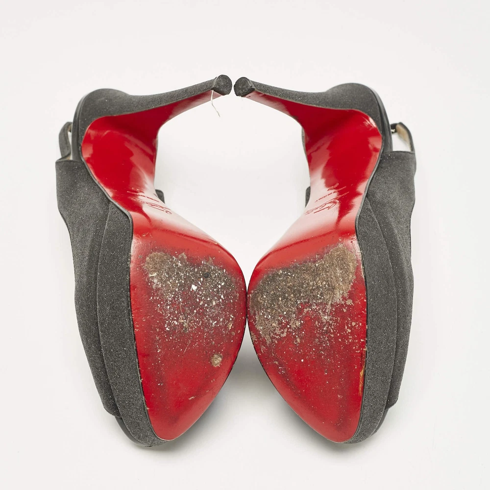 Our eBay Store About Us Contact Us Add to Favorite Sellers Christian Louboutin Grey Glitter Lady Peep Slingback Pumps Size 39 Designed to dazzle, these Christian Louboutin Lady Peep pumps feature shimmering grey glitter and a signature red sole. The peep-toe design and slingback strap add a classic touch to this statement heel. Product Details Brand Christian Louboutin Color Grey Includes The Luxury Closet Packaging Outsole Length 17.5 cm Outsole Width 6 cm Size 39 Certified by The Luxury Closet This item has gone through a detailed authentication process overseen by our experts. We offer a lifetime guarantee of authenticity on all our items. How We Check The in-house team of experts at The Luxury Closet is highly trained to verify the authenticity and the condition of the luxury products. They ensure that only 100% authentic items are put on sale.The evaluation process is unique with its own mix of assessment criteria and differs according to the category. Each item is evaluated based on the following combination of hallmarks, hardware, stitching, symmetry, material, craftsmanship, stamping, codes, hologram stickers, and packaging. Our authenticators also check if the items have been modified or amended (e.g., aftermarket diamonds, replaced batteries, repaired bags, etc.) International Buyers Import duties, taxes and charges are not included in the item price. These charges are the buyers responsibility. Please check with your country’s customs office to determine what these additional cost will be prior to buying.