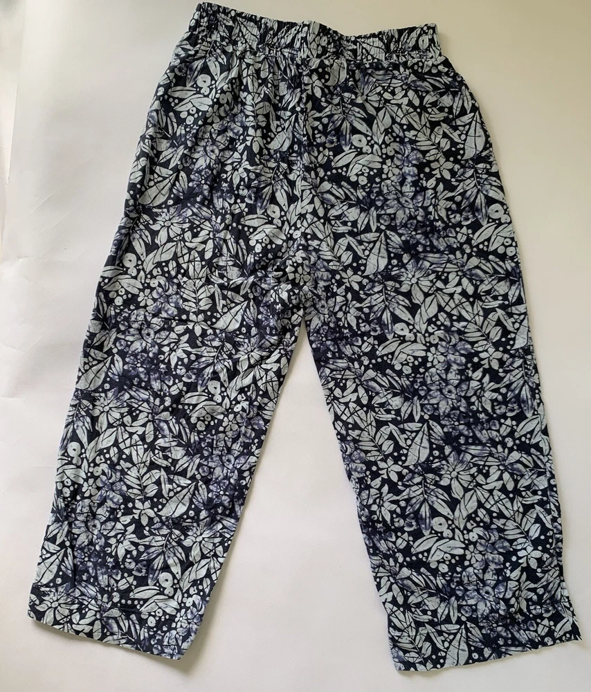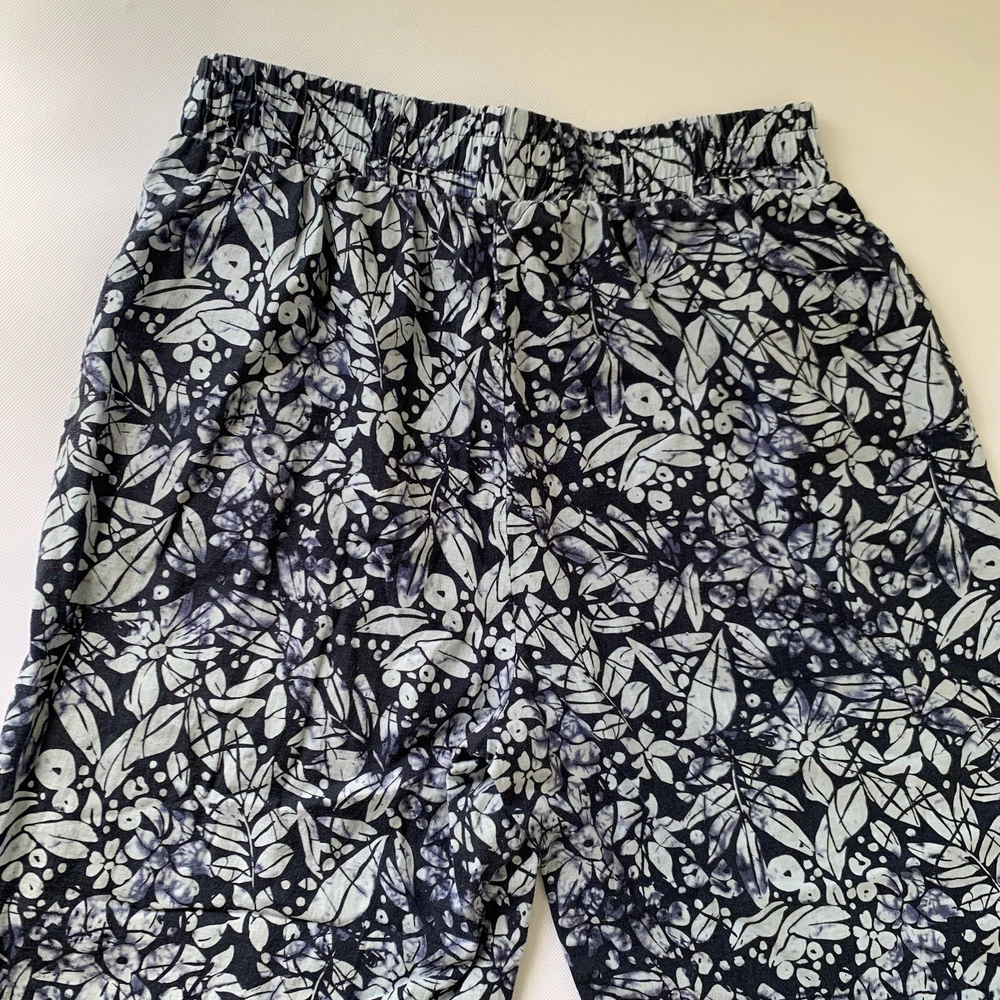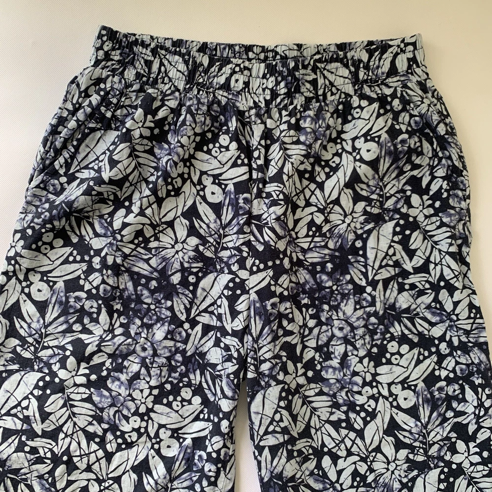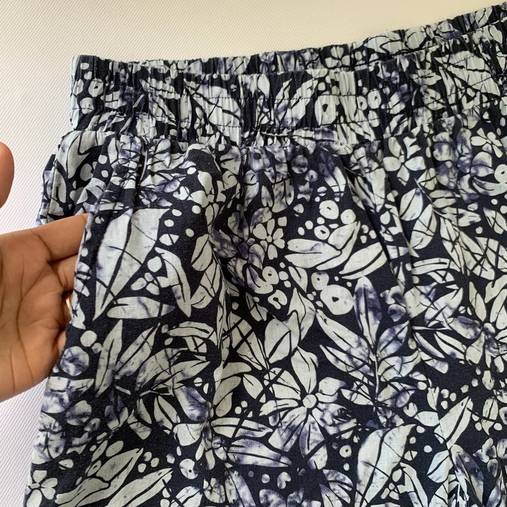 Christian Siriano Pants Women Large Blue Linen Wide Leg Crop Floral Boho Beach