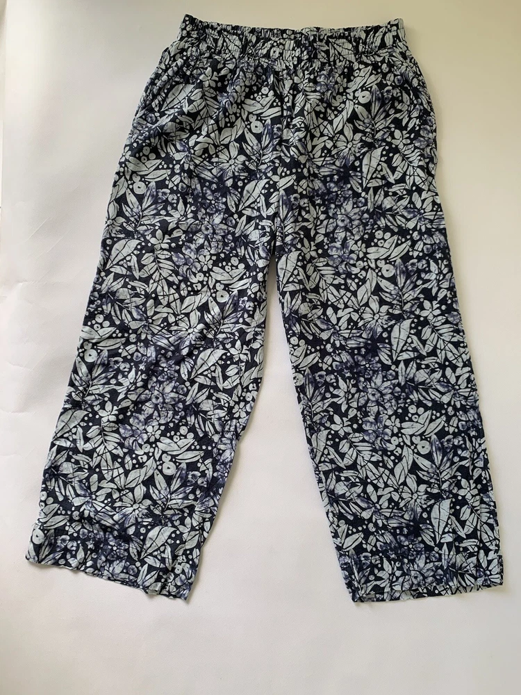Season: Fall, Spring, Summer, Winter Style: Cropped Vintage: No Closure: Pull On Garment Care: Machine Washable Department: Women Occasion: Business, Casual, Formal, Party/Cocktail, Travel, Wedding, Workwear Size: L Theme: Bohemian, Hippie, Tropical, Hawaiian, Beach Inseam: 24 in Personalize: No Features: Easy Care, Lightweight, Comfort, Pockets, Elastic Waist, Breathable, Crop Type: Pants Handmade: No Size Type: Regular Color: Blue Leg Style: Wide-Leg Rise: High (Greater than 10.5 in) Brand: Christian Siriano Fit: Regular Front Type: Flat Front Material: Linen, Rayon Waist Size: 29 in Pattern: Floral