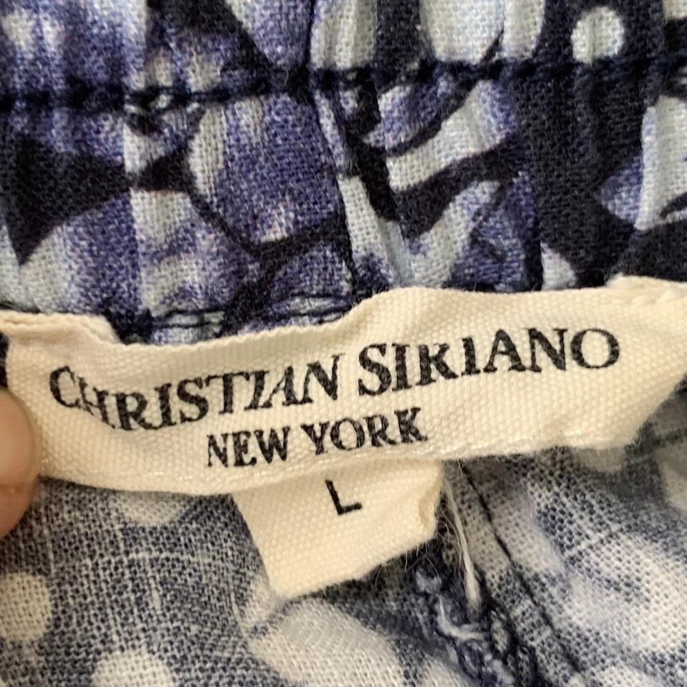 - Christian Siriano New York Pants Women Large Linen Rayon Blend Blue Floral Pattern Beach Coastal Stretch Waist Pockets Wide Leg See photos to c ompare your personal measurements to the garment's measurements to ensure proper fit. Excellent preowned condition. No tears or stains. See photos for any flaws circled in green & proper expectation of condition. FAST Shipping! 1-3 business days. Offers welcome! Tags: everyday s19p32 fashion stylish trendy classic spring summer fall winter seasons apparel comfy comfortable easy to wear classy casual favorite y2k 80s 90s versatile essential beach coastal nautical seaside quiet luxury designer relax cruise vacation