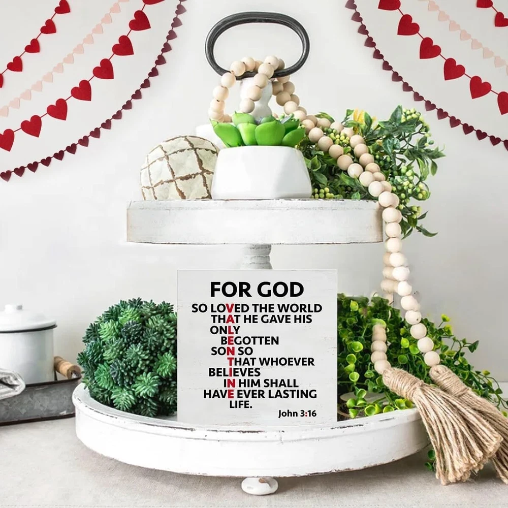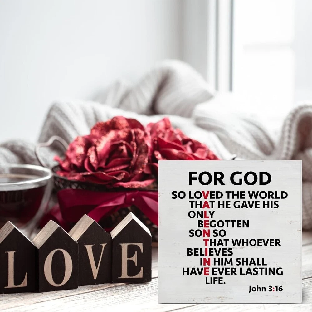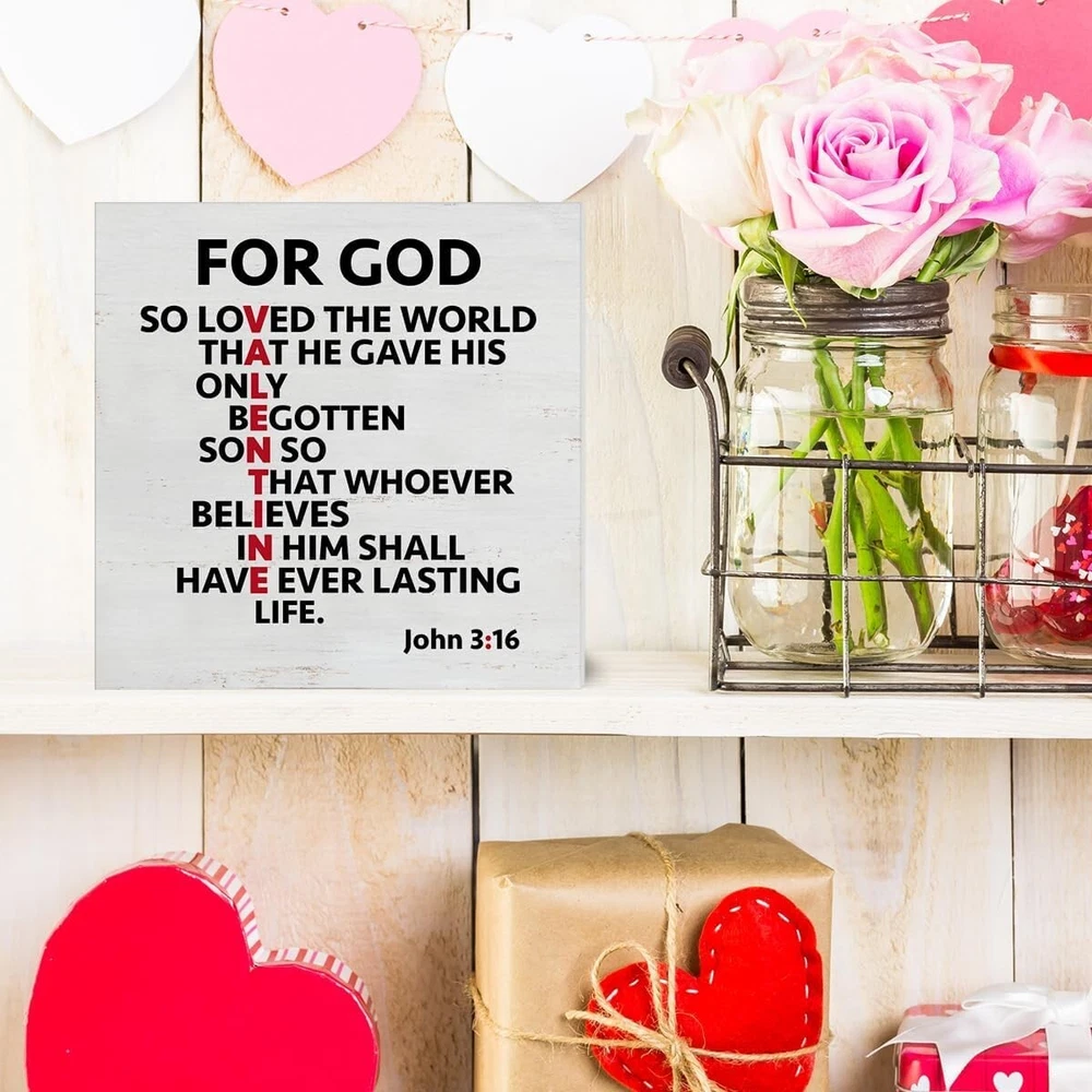 About this item Cute Size: The size is about 5 inches x 5 inches. Valentine's Day Decoration - This valentines decor is full of romantic atmosphere; suitable for weddings, anniversaries. It can be placed in the living room, bedroom, kitchen, tables, shelves, cabinets or any occasion. Valentine's Day Gift - This romantic valentines day decor sign is a great gift to give to your wife, husband, boyfriend, girlfriend, etc. High-quality Material - The material of valentines day decor sign is made of high-quality wood, with clear printing, beautiful appearance and durability. Tabletop Decor - It is suitable for placing on a flat surface for decoration, such as countertops, desk tops, table, bookshelves, coffee tables, etc.