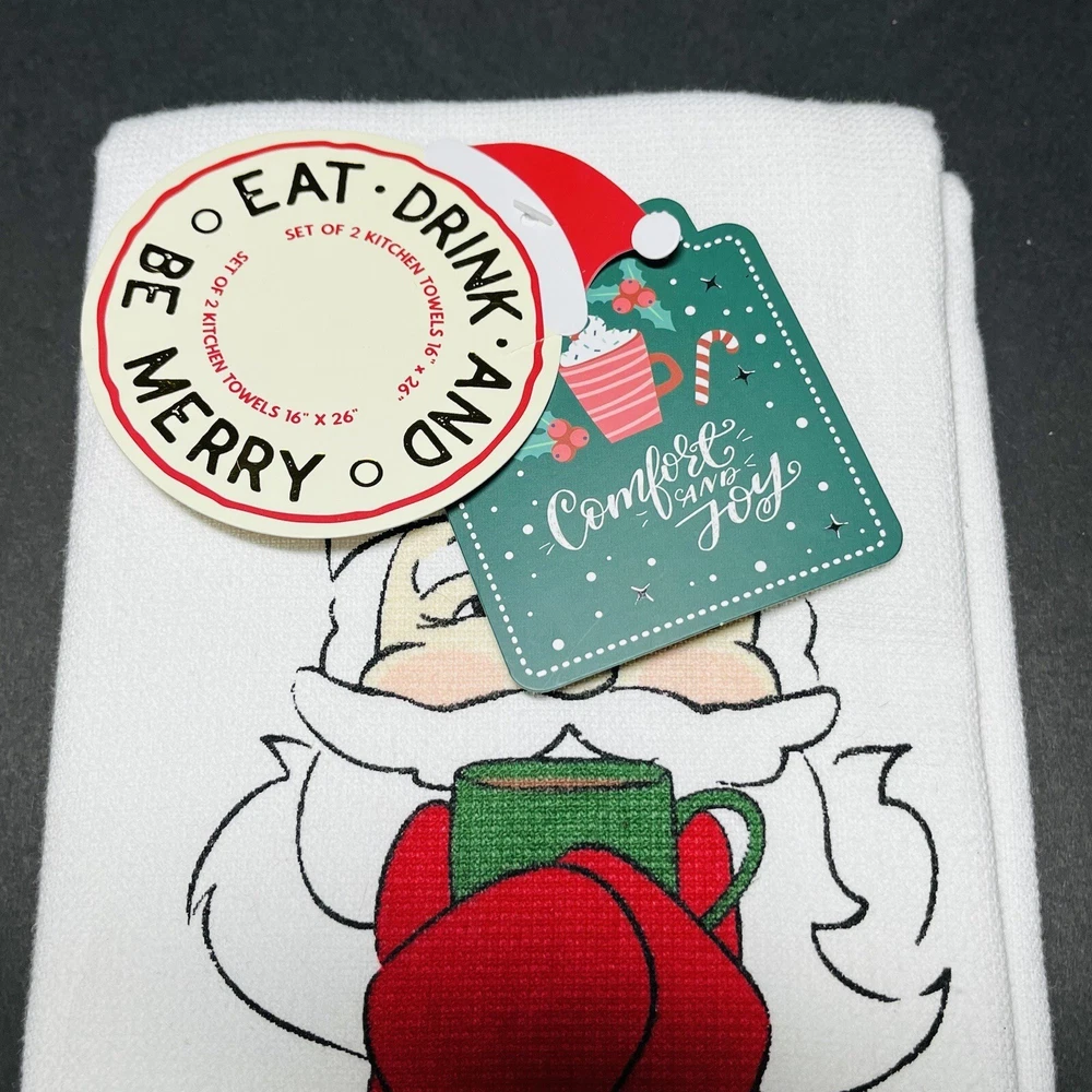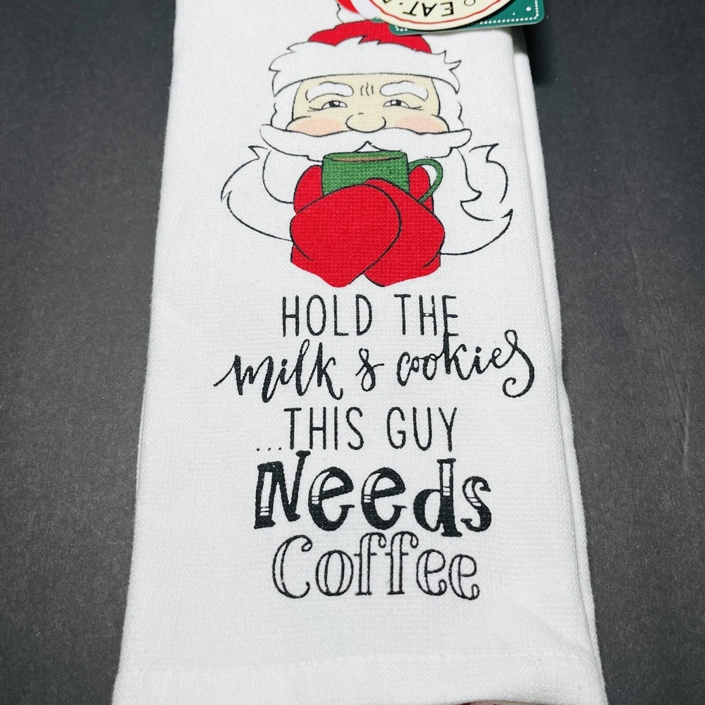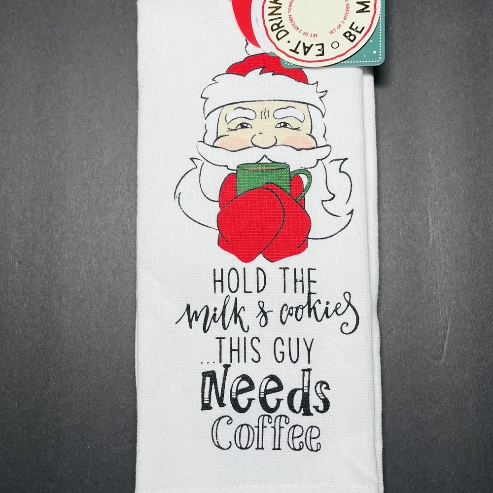 HomeChristmas 2 Pack Hand Kitchen Towels Decor Hold The Cookies Santa Needs Coffee