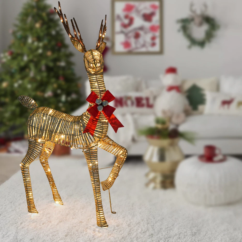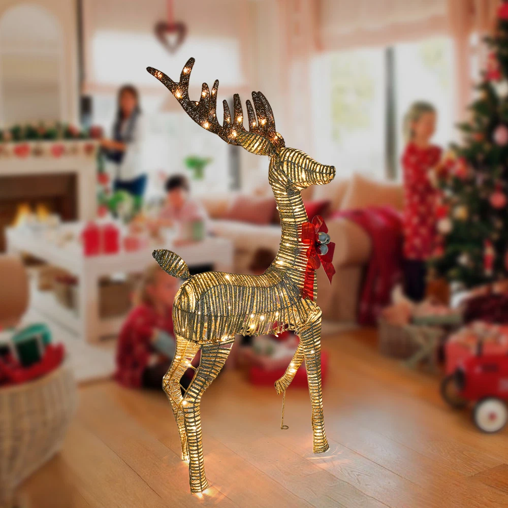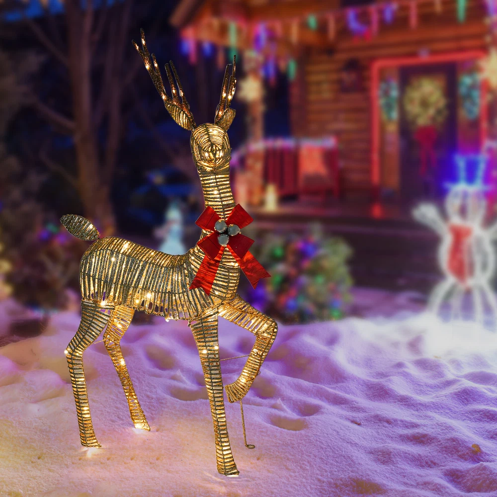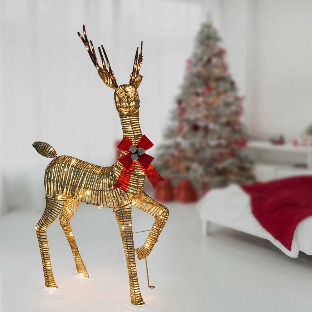 Christmas 4.66ft Reindeer Decoration Large Light Up LED Luxury Outdoor Xmas XL Welcome to my store Description This is a Christmas decorative deer with lights designed for the holiday season, adding a touch of warm and dreamy holiday atmosphere to your home. It combines the classic deer design with modern LED lighting technology, making it not only a decorative piece but also a cozy light to brighten up the winter night, filling every corner with holiday joy and light. Key Features Made to Last: Made of high-quality iron and PVC, this product is finely handcrafted, sturdy, and weather-resistant, not easy to corrode and deform, ensuring a long service life. Exquisite Appearance: The body of the deer has smooth lines, presenting a lifelike deer shape, and adding natural and spiritual elements to the festival. Atmosphere Creation: They are equipped with high-brightness LED light bulbs, which provide a soft and even light that casts an enchanting light effect through the body of the deer, creating a warm and romantic holiday atmosphere and transforming your yard into a winter wonderland. Lightweight and Portable: Its light weight(4.85 lbs) makes it easy for you to carry it to the place you want to decorate. Safe & Energy-saving: The LED string lights have low power consumption, are energy-saving, environmentally friendly, and safe to use. Even if it is turned on for a long time, it will not generate excessive heat, which is suitable for members of all ages at home. In addition, the IP65 waterproof rating increases the safety of use. Widely Applicable: This product is not only limited to Christmas decorations but also suitable for New Year, weddings, parties, and other occasions. Whether it is an indoor living room, bedroom, outdoor garden or terrace, it can be the focus of holiday decoration. Easy Assembly: Simple structure and complete accessories help you finish the installation quickly and use it in a short time. Ideal Gift: With good performance and a modern appearance, it can be used as an ideal housewarming gift for parents, friends, and lovers to create a cozy holiday atmosphere for them. Good Customer Service: We aim to provide quality products and services. If you have problems, please feel free to contact us. We will reply and solve the problem for you as soon as possible. Details Long Power Extension Cord: The 4.92 ft power extension cord reduces usage restrictions and further protects your safety. Ground Stakes: They hold deer securely in the ground, preventing them from being blown over by the wind, and can be effective against harsh weather conditions. Bow Tie: It is a great addition to the deer and adds a splash of color to holiday decorations. Application It can be placed in front yards, gardens, porches, lawns, garages, and even indoors in the winter as decorations for Christmas, New Year's, weddings, parties, and more! Specification Material: Iron, PVC Process: Handmade Assembly Required: Yes Mounting Type: Free Standing Plug Type: US Standard Light Source: LED Voltage: 110V Light Color: Warm White Waterproof Rating: IP65 Power Extension Cord Length: 1.5m/4.92 ft Product Size: 68.6*38*142cm/27*14.96*55.9in Package Size: 55*20*25cm/21.65*7.87*9.84in Gross Weight: 2.5kg/5.51lbs Net Weight: 2.2kg/4.85lbs Package Included 1* Light up Christmas Decor Deer Other Accessories for Assembly Notes Please note that the plug is a two-flat plug. Please note that the color and brightness of the lights are not adjustable. Please allow the slight color difference caused by the shooting light and 1-3cm error due to manual measurement, and make sure you do not mind before ordering. Payment Delivery details Terms of sales About us Contact us Payment We accept ebay payment 。 Fees such as import duties, taxes are not included in the item price or shipping costs. These charges are the buyer's responsibility. Delivery details Shipping: 2-9 working days to: USA Terms of sales We maintain high standards of excellence and strive for hundred percent customer satisfaction. Feedback is very important to us. We hope that you contact us immediately before you give neutral or negative feedback, so that we can address your concerns. It is impossible to address issues if we do not know about them! About us Your satis faction is our ultimate goal. We work hard to earn your trust and future business. Our certified technicians have tested each item before shipping. The unit comes with 1 year limited warranty on all manufacturing defects. a) If you receive a defective item, you may return it or ask for a discount. Please contact us within 14 days after you receive the package. b) What you returned must be intact and in its original packaging as re? u. Customer is responsible for shipping costs of the returned item. c) We will cover the cost of shipping back t with the shipping rate indicated in the registration page. We will send you a new unit or refund the full payment you paid. Thank you. Contact us Business Hour Business Hour: Monday To Friday: 8:30 AM to 5:00 PM (Beijing China time) Due to time zones, our reply to your questions may not be immediately. But within above working time, we will reply your email within 24 hours. If it's non-workdays, please kindly be patient and wait till Monday. Please contact us with ebay message. Please feel free to contact us if you have any questions. Monday To Friday: 8:30 AM to 5:00 PM (Beijing China time) Due to time zones, our reply to your questions may not be immediately. But within above working time, we will reply your email within 24 hours. If it's non-workdays, please kindly be patient and wait till Monday. Please contact us with ebay message. Please feel free to contact us if you have any questions. Feature! Stable performance, durable Brand Unbranded Type Christmas Character Material Iron, PVC Light Source LED Voltage 110v Light Color Warm White Waterproof Rating IP65 Occasion Christmas