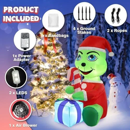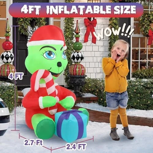 30 Days Return Policy Fast Delivery Trusted seller Christmas 4ft Green Ugly Monster Inflatables Outdoor Decorations with LED Lights Funny Xmas Blow ups for Holiday Outside Indoor Décor Party Yard Garden Lawn Product Description Unique Appearance Design:Cute green ugly monster sitting on the ground with smile. He was carrying a red and white walking stick in his arms, give a person a kind of amiable feeling. Built-in eye-catching super bright pure white Energy-Saving LED lights, It will attract guests and neighbors at night, you will definitely receive a lot of compliments. It also can be used as any other holiday decoration Durable & Waterproof Material: This 4ft tall green ugly monster inflatable Halloween yard decoration is made of excellent quality thickened polyester material with tight stitching. With its good waterproofing ability, fade resistance, lightweight and breath ability, it offers longevity, vibrant colors, and easy maintenance. Accompany you on Christmas year after year make our inflatable decorations is an excellent choice for anyone looking for a quality inflatable decor Safety & Reinforcement Design: This cute christmas outdoor decorations monster is equipped with 2 fasten ropes, 4 ground stakes, that make it secure easily in outdoor settings such as gardens and lawns. No need to worry that it will fly away with the wind. Our green giant monster blow up lawn decor also come with a built-in fan and a safe adapter plug, making it very safe for outdoor use, so that you can enjoy the joy of the vacation with more confidence Installation and Precautions:First put it on the flat ground, zip up the zipper .Then fix the inflatable decoration by the stakes and make sure it is secured on the ground. Finally, it will be perfectly presented in front of you. TIPS: do not put anything into the blower and inflatable. Please make sure the air blower is facing up when inflating. The air blower facing the ground will affect the effect of inflating Versatile Holiday Decor: Whether you want to enhance your yard, lawn, porch, or garden, restaurants, cafes, home, indoor and outdoor use, this Christmas blow up decoration will add a touch of fun to any space. Perfect for Halloween parties, Christmas night event, haunted houses, or simply delighting trick-or-treaters, this captivating display will cast a spell of Christmas magic like never before Shipping Returns Payment Shipping Shipping is FREE to all addresses other than APO/PO boxes in the lower 48 states. All our stock ships from US-based warehouses. Shipped via USPS or UPS (depending on location and package weight) Unless stated otherwise, all orders will ship within 24-72 hours of your payment being processed. Check our feedback to see the great reviews of FAST shipping we offer. Returns As our valued customer, we will do our best to make sure the product you receive arrives to you on time and as expected. If you are not satisfied with your purchase, please contact us within 30 days of receiving your order to process a return. Payment We currently accept payment via eBay managed payments only. Once payment is cleared, we will dispatch your shipment within 1-3 business days. Please refer to the "Shipping" tab for more information regarding shipping speed to your destination.