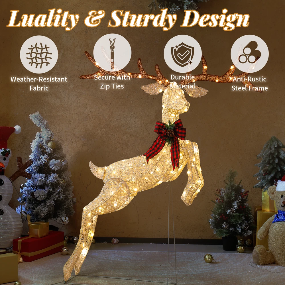 listing template VISIT OUR STORE SIGH UP FOR EMAIL Christmas 5FT Lighted Jumping Reindeer Decoration for In/Outdoor Lawn Decor 5FT Lighted Jumping Reindeer Christmas Decorations, Pre-lit Holiday Decor with 100 Warm White LED Lights for Xmas Outdoor Indoor Decor Lighted Holiday Displays Introd uctions: Create a warm and festive atmosphere with this enchanting set of Christmas lighted decorations. Perfect for both indoor and outdoor use, these glowing holiday displays will instantly brighten up your home, yard, or patio, making them a great addition to your seasonal décor. With durable construction and weather-resistant materials, these decorations are designed to withstand winter conditions, ensuring that they will bring holiday cheer year after year. Easy to set up and store, they provide a hassle-free way to enhance your holiday celebrations. Features: 1. Adorable Christmas Decoration: Featuring a vivid reindeer in jumping posture and decorated with a large bowknot, this decoration adds a playful and festive touch to any space. 2. Eye-catching LED Lights: Pre-lit with well-placed LED lights, this holiday display radiates a soft, warm white glow that illuminates your space beautifully at night. The lights bring your outdoor decor to life, making your home the highlight of the neighborhood during the holidays. 3. Easy Assembly & Storage: This collapsible Xmas decoration can be set up in minutes, allowing you to enjoy your festive display without hassle. Once the holiday season is over, it easily folds down into a compact size for convenient storage. 4. Weather-Resistant and Sturdy Build: Made from a durable, rustproof metal frame with sparkling fabric, this set is built to withstand wind, rain, and snow. 5. Perfect Holiday Decor for Indoor & Outdoor: Whether displayed in your living room, near your Christmas tree, on the porch, or in the yard, this lighted Christmas decoration adds a magical and cozy ambiance to any space. Its lightweight design makes it easy to move and position them wherever you want to spread holiday cheer. Specifications: 1. Number of Lights: 100 pcs 2. Light Color: Warm white 3. Voltage: 4.5V 4. Power: 3.6W 5. Overall Dimensions: (38.6 x 34.6 x 58.3) in / (98 x 88 x 148) cm Package Includes: 1 x Christmas Lighted Decoration Shipping Policy 1. Ship worldwide from New Jersey by reliable shipping companies -- USPS, UPS, FEDEX, DHL, etc., and only to VERIFIED PAYPAL ADDRESS. Transport Delivery ETA. Package handling only takes 1 business day at our warehouse, so please make sure entering correct payment and shipping information before checking out. Once your payment is completed, we are not going to accept any more changes to your order. 2. International Buyers – Please Note: a. Import duties, taxes and charges are not included in the item price or shipping charges. These charges are the buyer's responsibility. b. Please check with your country's customs office to determine what these additional costs will be prior to bidding/buying. 3. Please check your shipping address carefully before checkout, it can't be changed if order completed. 4. Orders placed on weekend will be shipped within 2 days.Notification of shipment with tracking number will be sent to buyers. 5. Standard shipping: 2-7 business days Expedited Shipping: 2-3 business days One-day Shipping: 1 business day International shipping: Varies 6.Ship within 1 business day once payment completed. Notification of shipment with tracking No. will be sent to buyer. 7.We offer discounts for combine shipping. Please contact us first if you need combine shipping, and an invoice with discount will be sent to you. 8.Please allow 5 business days for delivery to US destinations on any eBay orders and 14 business days for delivery to any International destinations. We highly recommend our buyer choose priority/expess mail for international delivery which is much more stable. Return Policies 1. Refunds given only if item DOA and cannot be replaced via PAYPAL . If so, Please contact us with 5 days since you receive the item and and return to us within 30 days from the delivery date for exchange or refund. 2. If you need return, please contact our customer service representative, let us know the detailed problem and send us some pictures for confirmation. Payment Payment should be sent within 8(EIGHT) days of auction closing. Feedback If you are dissatisfied for any reason, please do not be quick to leave negative/neutral feedback. We work hard to make sure EVERY CUSTOMER 100% SATISFIED and resolve any problem for you. Work Time Work Time: Monday to Saturday About Us | Newsletter| Feedback| Contact Us Copyright © 2022 LikeDeal. All rights reserved. 无标题文档 Christmas 5FT Lighted Jumping Reindeer Decoration for In/Outdoor Lawn Decor 5FT Lighted Jumping Reindeer Christmas Decorations, Pre-lit Holiday Decor with 100 Warm White LED Lights for Xmas Outdoor Indoor Decor Lighted Holiday Displays Introd uctions: Create a warm and festive atmosphere with this enchanting set of Christmas lighted decorations. Perfect for both indoor and outdoor use, these glowing holiday displays will instantly brighten up your home, yard, or patio, making them a great addition to your seasonal décor. With durable construction and weather-resistant materials, these decorations are designed to withstand winter conditions, ensuring that they will bring holiday cheer year after year. Easy to set up and store, they provide a hassle-free way to enhance your holiday celebrations. Features: 1. Adorable Christmas Decoration: Featuring a vivid reindeer in jumping posture and decorated with a large bowknot, this decoration adds a playful and festive touch to any space. 2. Eye-catching LED Lights: Pre-lit with well-placed LED lights, this holiday display radiates a soft, warm white glow that illuminates your space beautifully at night. The lights bring your outdoor decor to life, making your home the highlight of the neighborhood during the holidays. 3. Ea