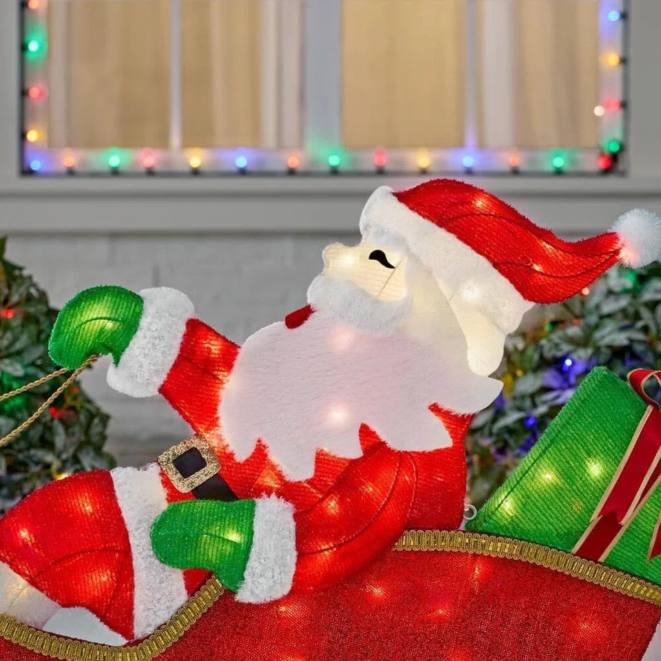 Christmas 4.5FT Santa Sleigh Elf Messenger LED Lights Outdoor Lawn Yard Art Set