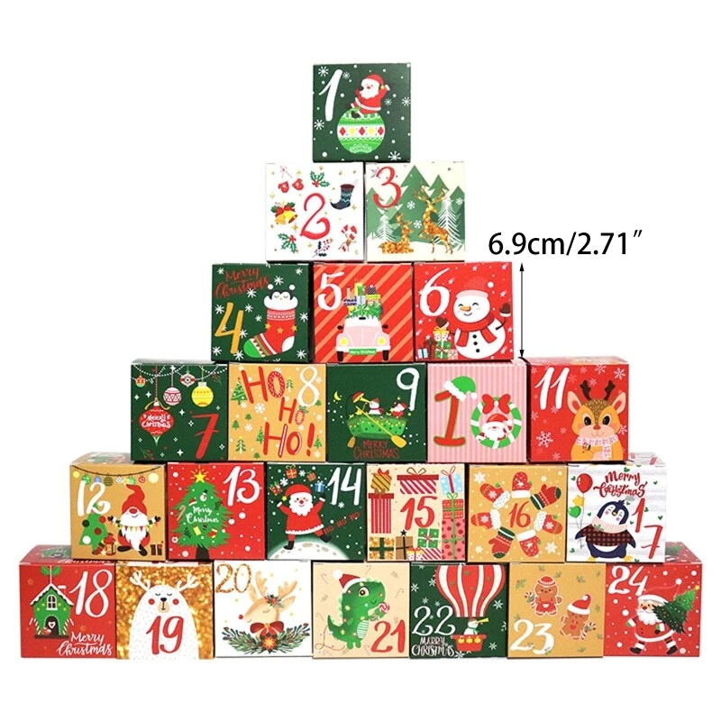 Features: brand new and high quality Premium material: Adoption of premium 250gsm white cardboard material, the gift boxes are durable and practical. Packaging contents: 24 packs of Christmas advent calendar boxes with countdown numbers on it. Wide use: Perfect size for hold small gift, such as candies, chocolates or jewelry. It also great for decorating your home or office. Add Christmas Bright printed colors is also great for Christmas party, which can also the Christmas Surprising boxes: The Christmas calendar adopted the patterns which will be a great decoration at your home or office. It is also a great Christmas interactive games. workmates, families can open every day and look for snacks inside. Specifications: Material: 250gsm White Cardboard Size: approx.23.5cm/9.25in Color: As the picture shown Quantity: 24Pc Package Includes: 24xChristmas Advent Calendar Boxes (other accessories in the picture is not included.) note: Please allow 0-1cm error due to manual measurement. pls make sure you do not mind before you bid. Due to the difference between different monitors, the picture may not reflect the actual color of the item. Thank you!