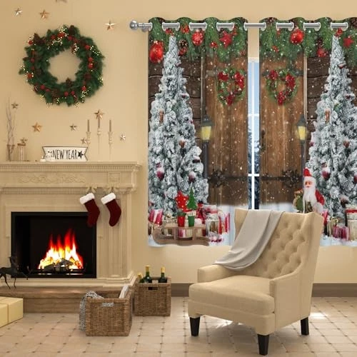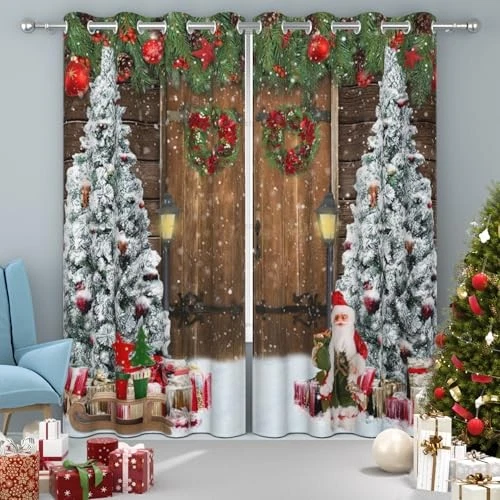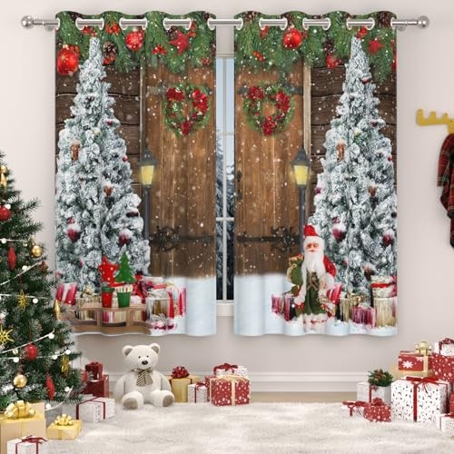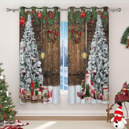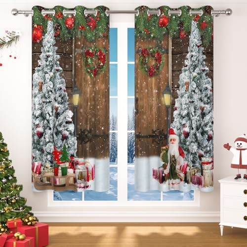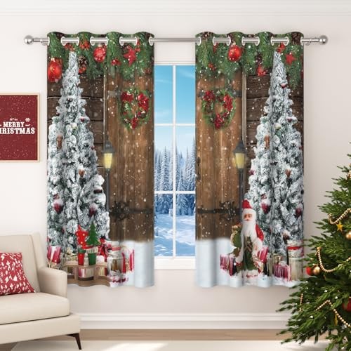Christmas Blackout Curtains for Living Room Wood Barn 52x84Inches Christmas-2
