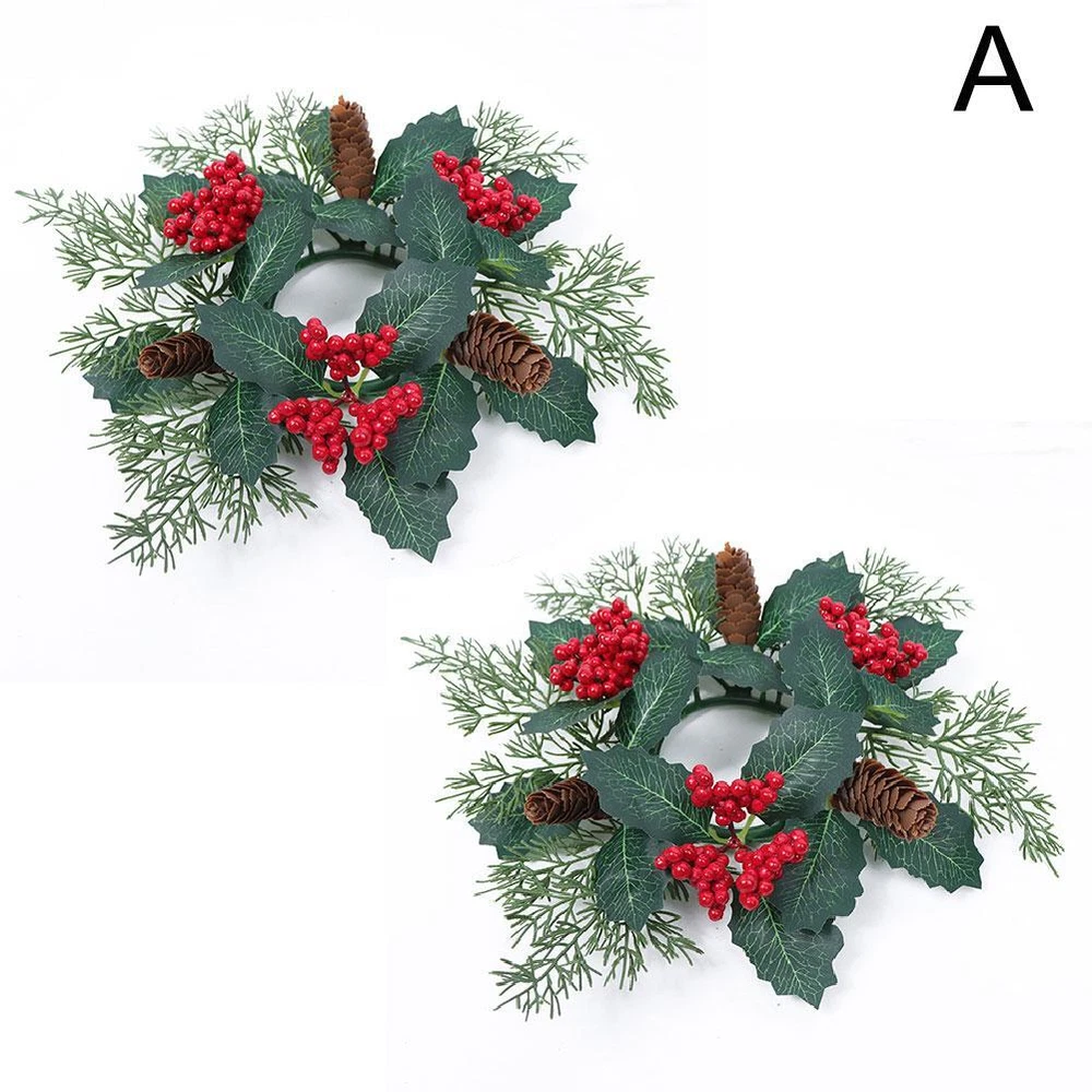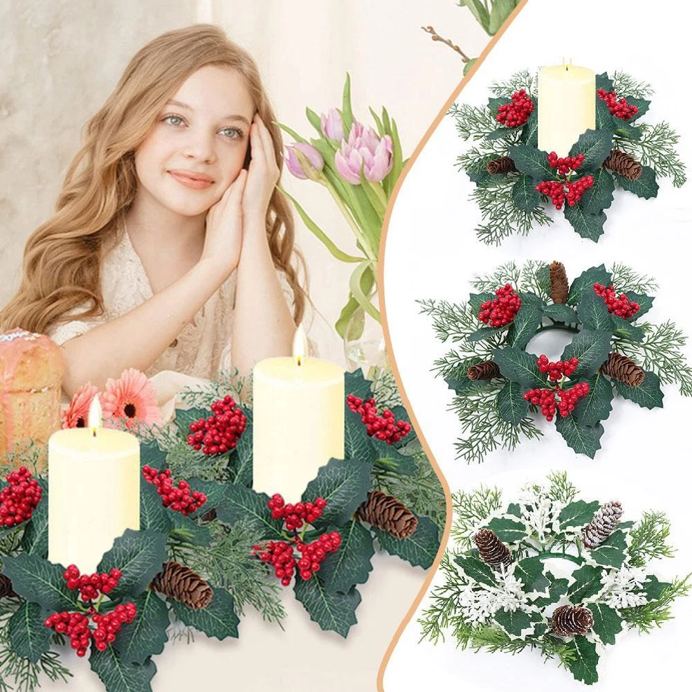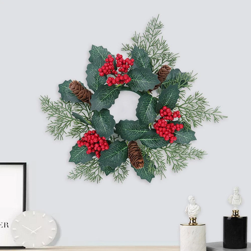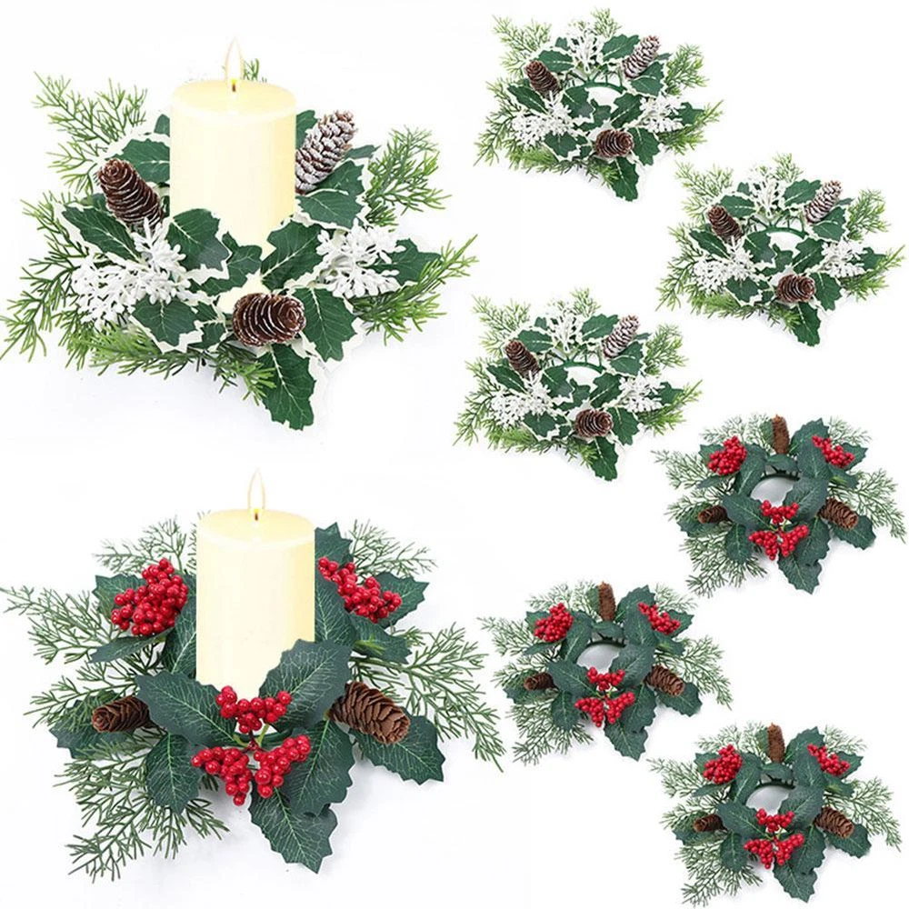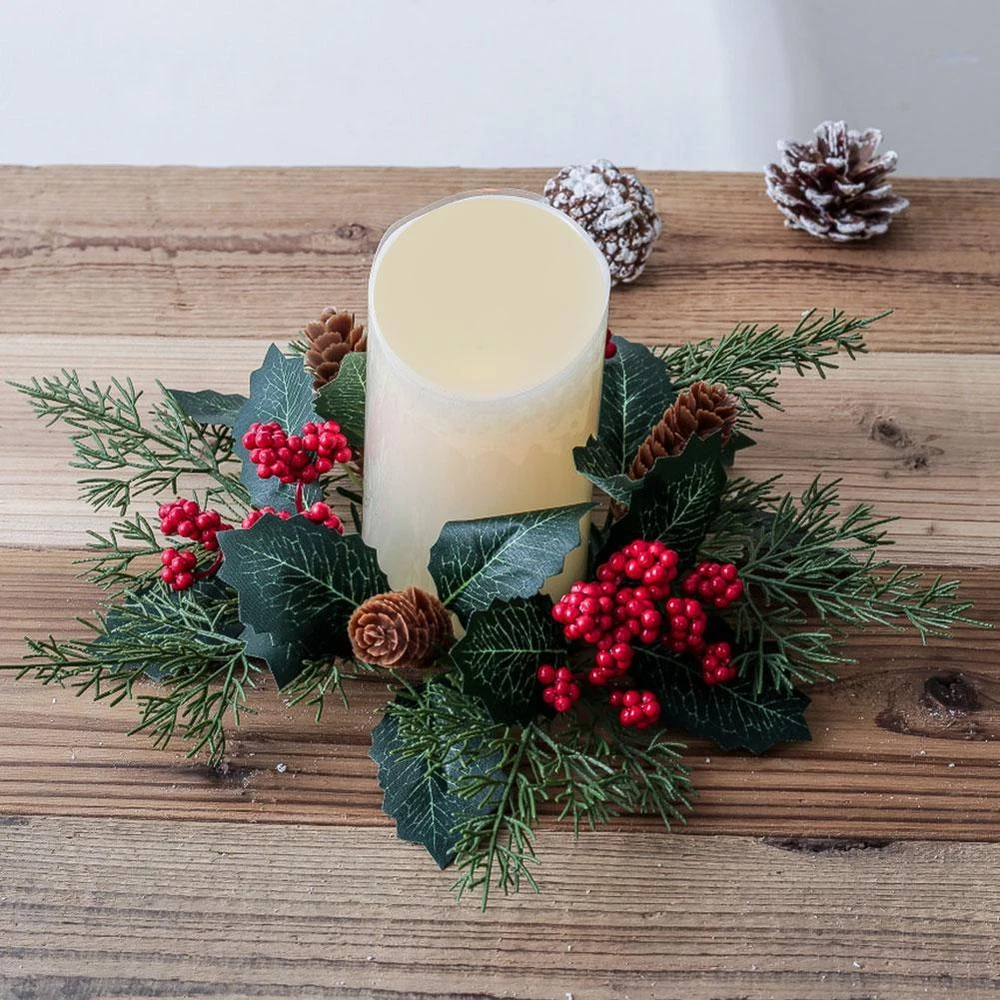 Christmas Candlestick Wreath Artificial Berry Pinecone Garland Candle Holde P7O1