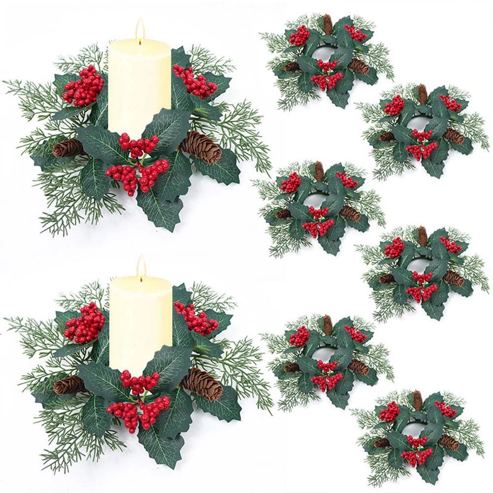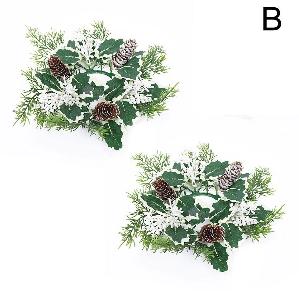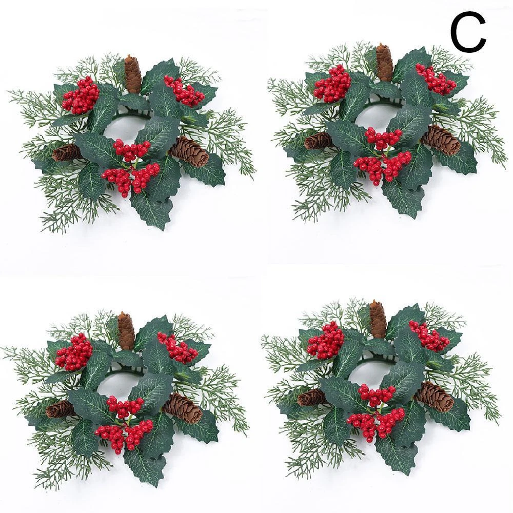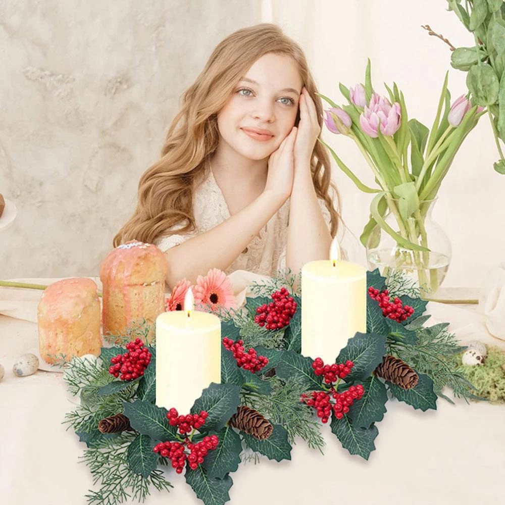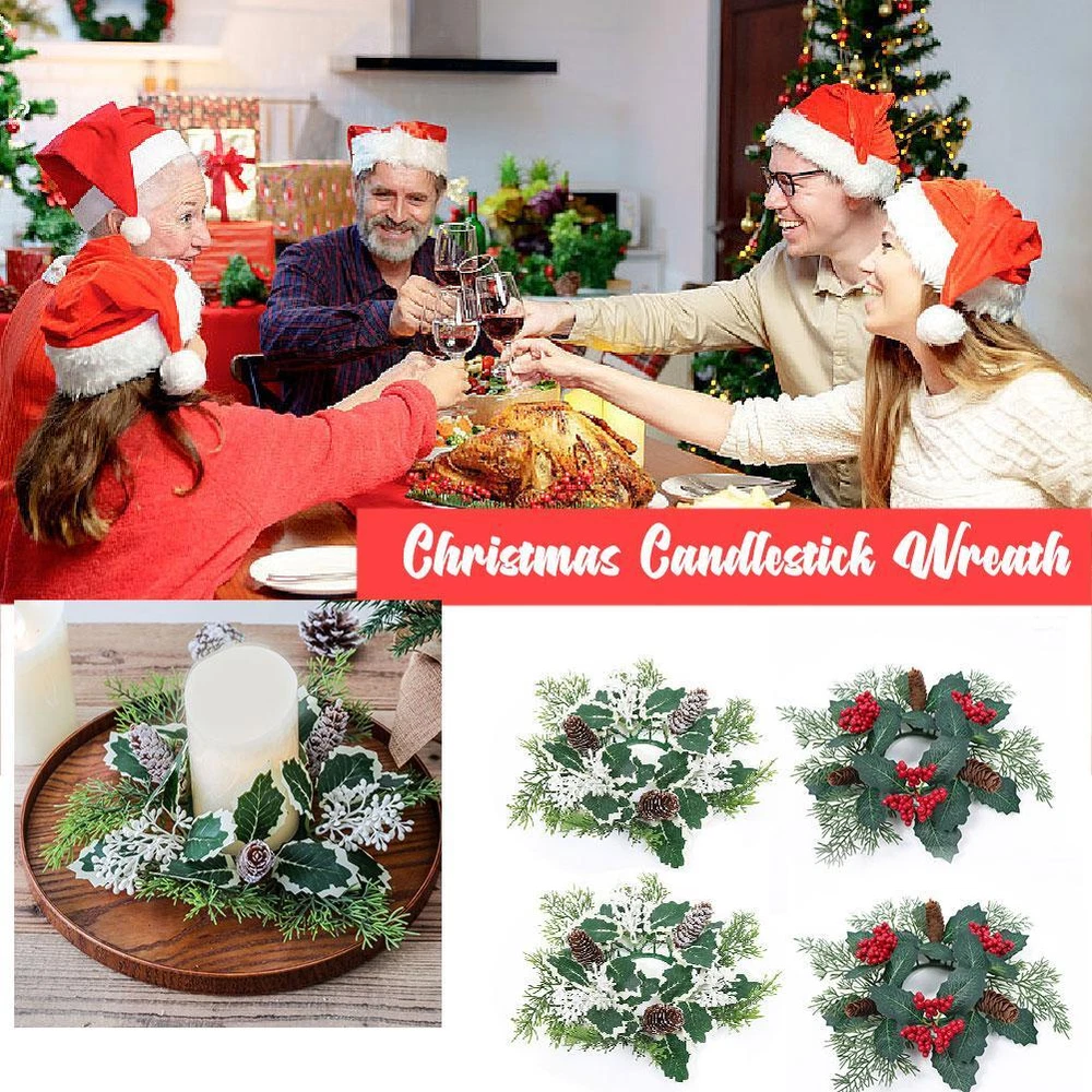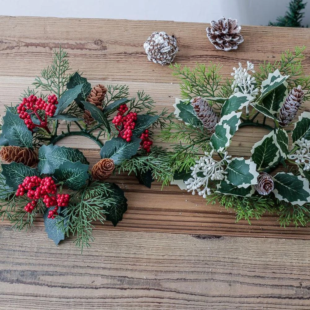 Christmas Candlestick Wreath Artificial Berry Pinecone Garland Candle Holde P7O1