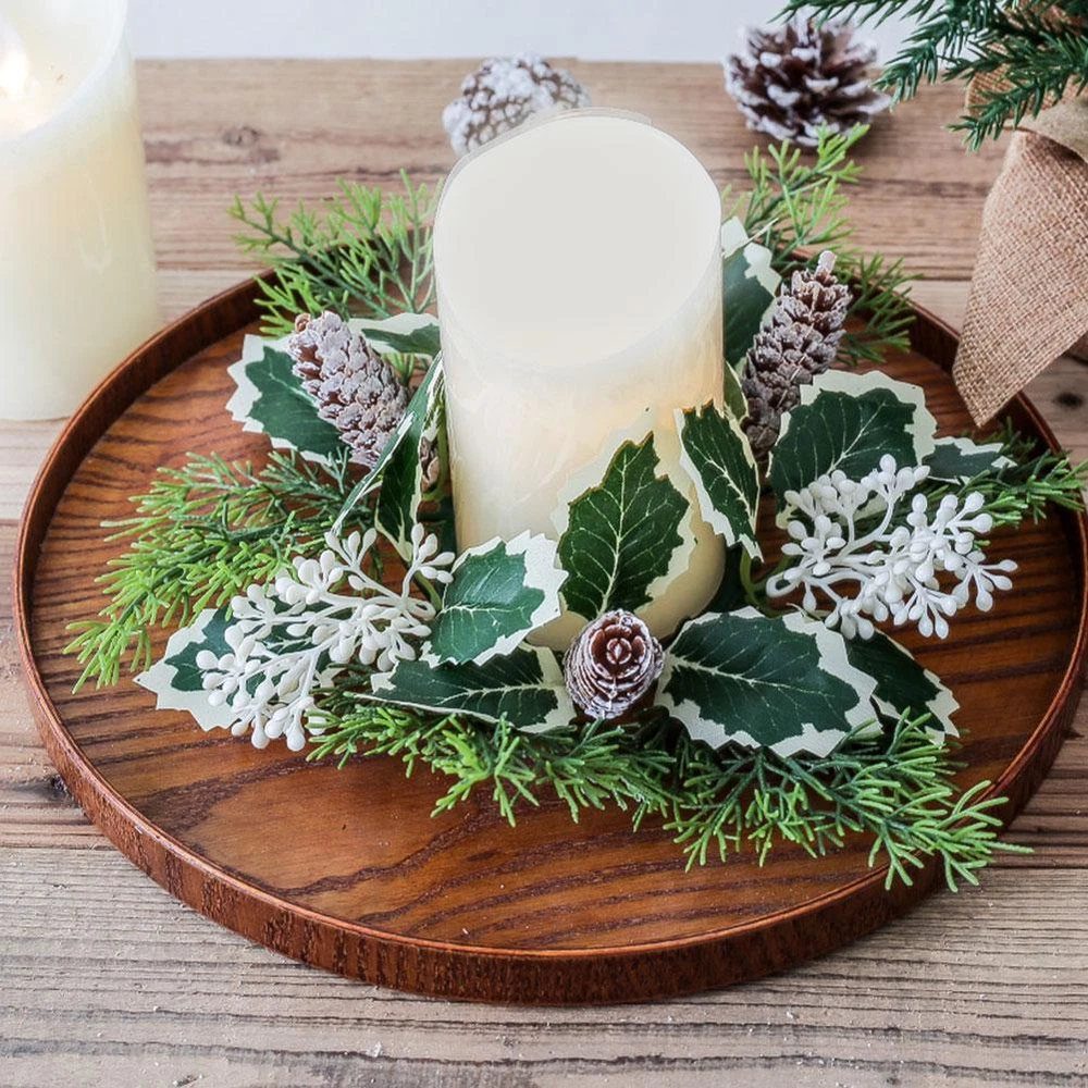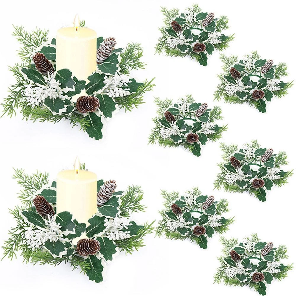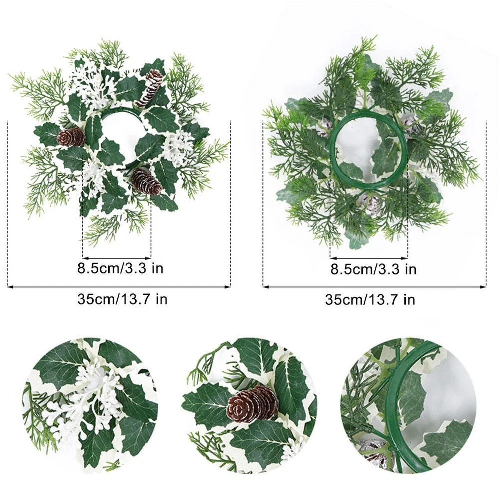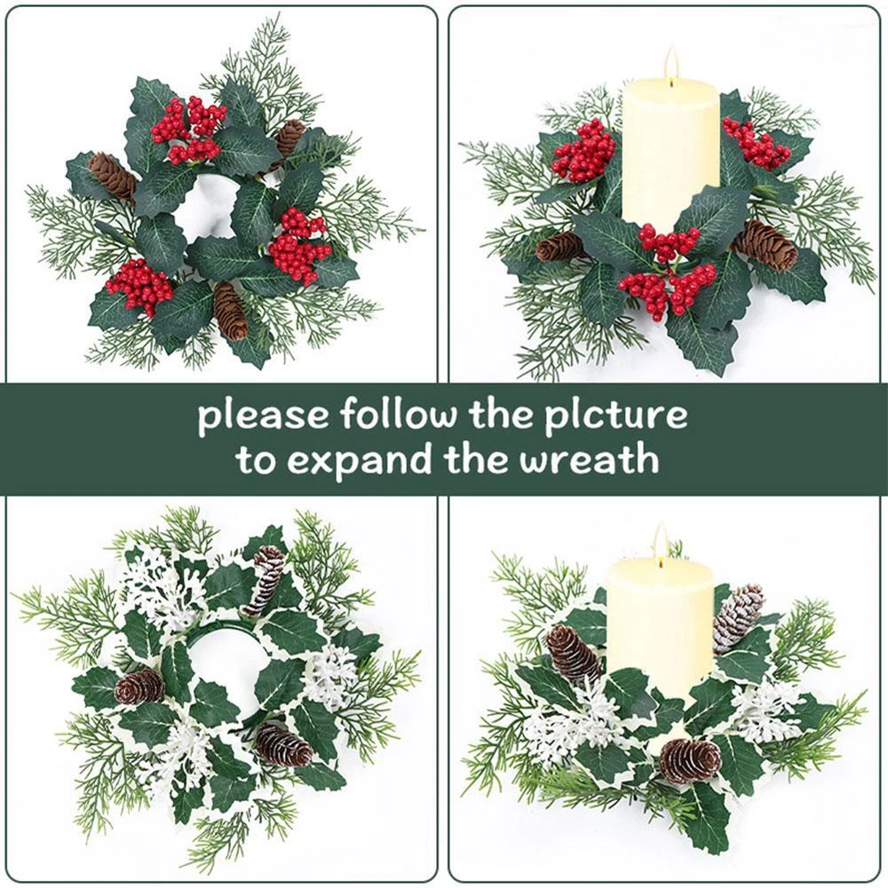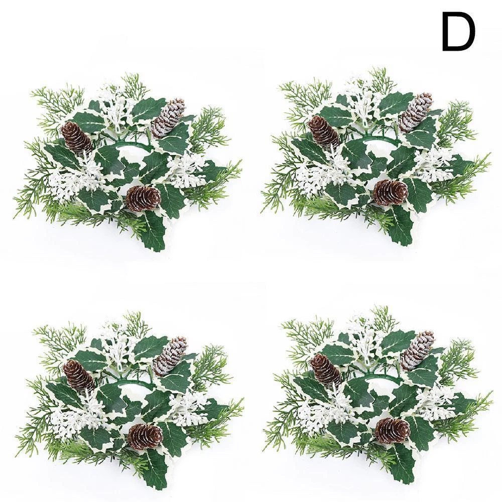 Christmas Candlestick Wreath Artificial Berry Pinecone Garland Candle Holde P7O1
