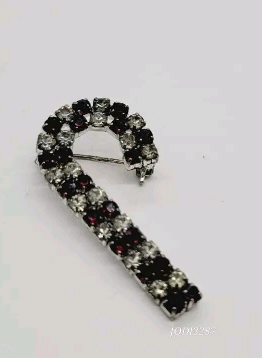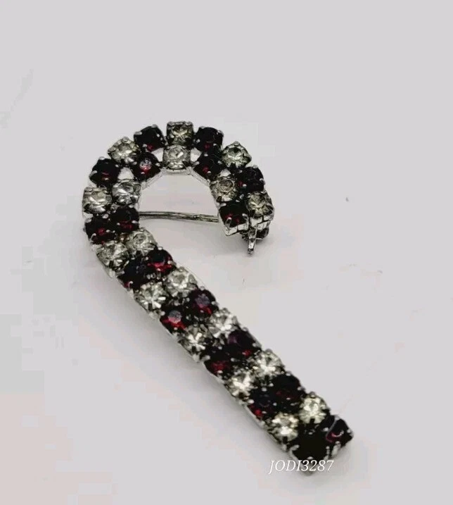 Personalize:NoMain Stone Shape:RoundMain Stone:CrystalCountry/Region of Manufacture:UnknownMain Stone Creation:UnknownDepartment:WomenVintage:YesHandmade:NoBase Metal:UnknownJewelry Department:FashionCountry of Origin:UnknownAntique:NoSigned:NoOccasion:ChristmasMaterial:CrystalCustomized:NoMain Stone Color:Red WhiteType:BroochColor:Red white SilverMetal:UnknownShape:Candy CaneBrand:Christmas StoreItem Length:1.5 inTheme:Fashion & Costumes, Food & Drink, Christmas