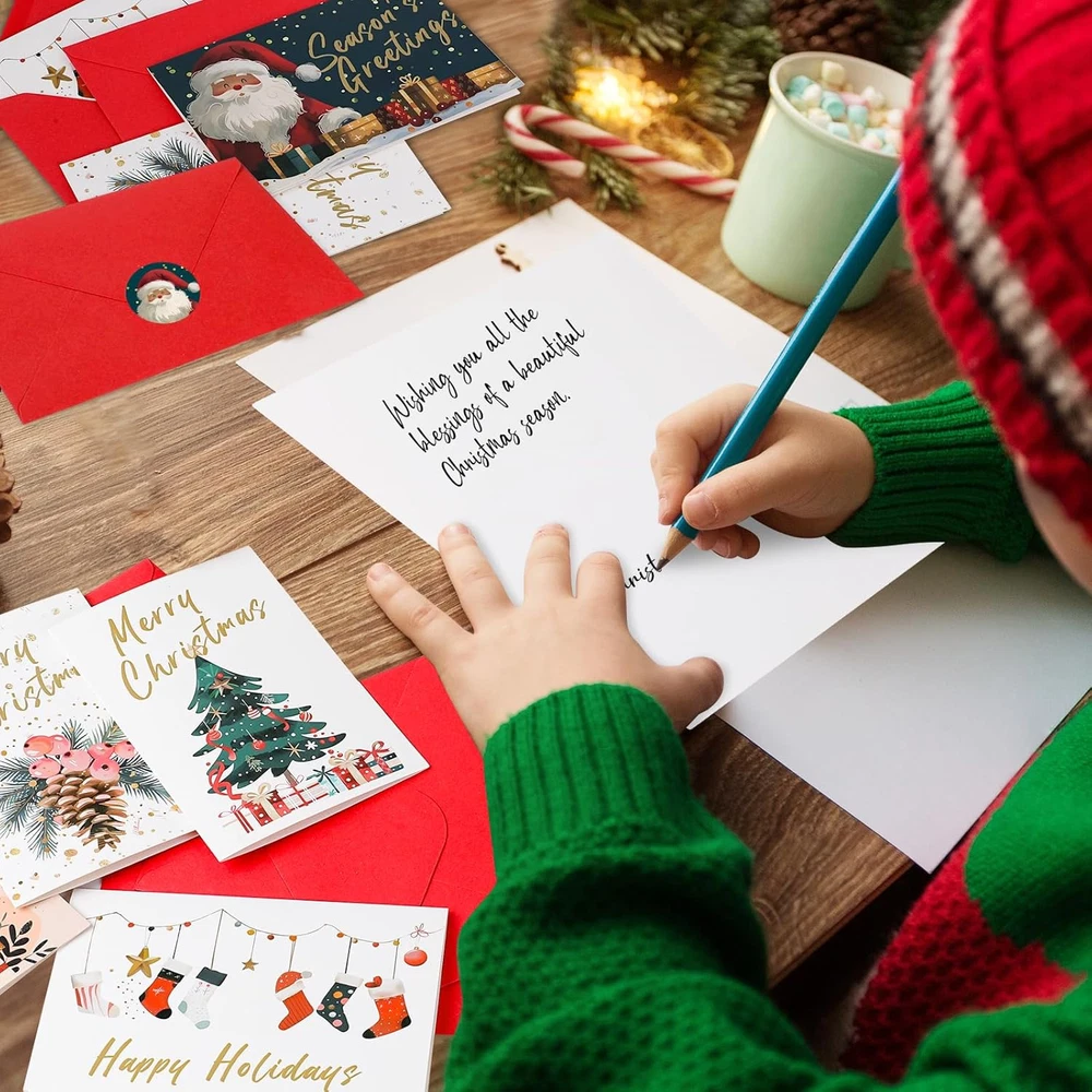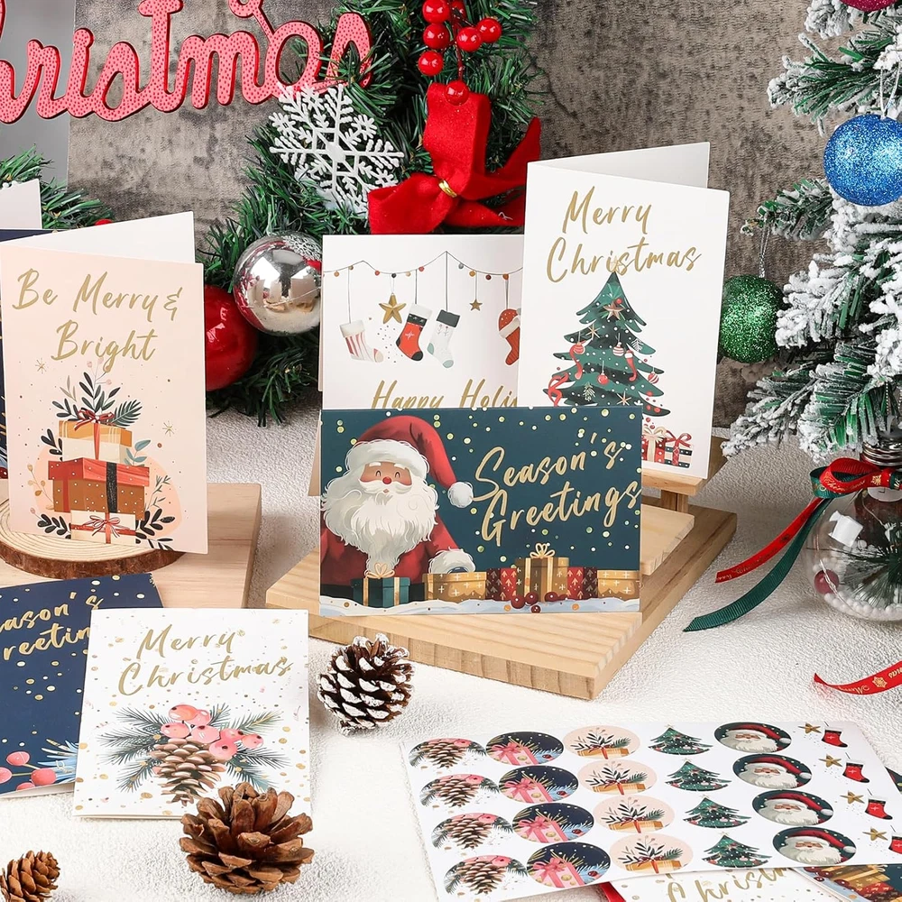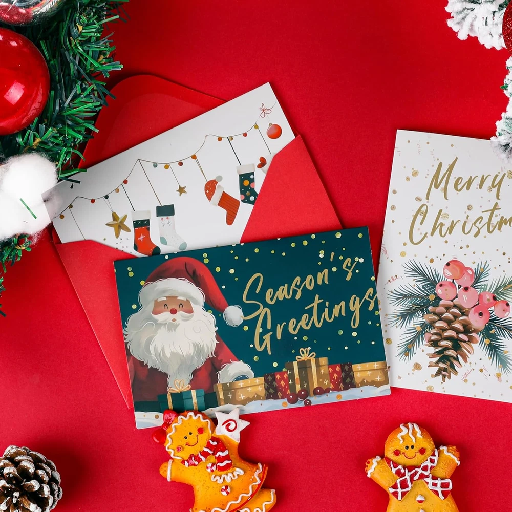 Store New Arrivals Add to Favorite View Feedback Contact Fast deliveries to the customer's home Quality customer service John Make the customers happy! Christmas Cards Assortment, 24 Christmas Cards with Envelopes, 4X6 Inch Christmas Card with 6 Designs, Christmas Cards Bulk for Christmas, Holiday, New Year Gift Description đăChristmas Cards with Envelopesă:You will receive 24 pcs christmas cards,24 pcs red envelopes and 24 pcs stickers,sufficient quantity and the complete set to meet your needs of expressing your festival blessings to friends,family members,colleagues and relatives. đ ăPremium Qualityă:Each christmas card are made of high-quality cardstock paper,the paper surface is smooth.Blank interior pages,the matte finish makes the card absorbs ink beautifully,you can write personalized messages,draw illustrations,very suitable for parents and children to write blessings together. đăDelicate Designă:24 pcs christmas cards & stickers has 6 unique designâ contains a variety of Christmas elements,such as Santa Claus,gift box,Christmas trees, pinecone cone,etc.Each design celebrates Christmas and matches the Christmas theme to add more festive vibes. â¨ăPerfect Sizeă:Christmas Cards are 4 x 6 inches when folded,the envelopes size is 4.1 x 6.2 inches,small gifts and photos can be well placed in envelopes.Proper in size and light in weight,suitable for you to carry and store. đăChristmas Wishesă: The exquisite Christmas greeting cards have a strong festive atmosphere and are very suitable for expressing Christmas blessings to family and friends on the occasion of Christmas party and New Year party.You can write the date on the Christmas card you receive and read it again next year or every year Christmas and New Year after that,which has a very high commemorative value. Product Description Christmas Cards with Envelopes -6 Christmas Element Designs Writing Smooth No ink smudging,crafted by high quality durable cardboard,which makes your writing smooth. 2 Sealing Methods Comes with sealing adhesive or seal the envelope with the christmas stickers,making it more private and official. Blank Inside Blank inside allows you to display personalized and qraceful message,whetherit's your handwriting or painting,it can show your festival blessings. Delicate Design Christmas greeting cards and stickers has 6 delicate design,each card contains different Christmas elements,make your festival blessings unique. 1 High Quality Cards 2 Special Gifts 3 Cards with Envelopes 4 Rich Christmas Elements Let FUHITIM Greeting Cards Convey Love Sincere Blessings Can Bring Happiness to People Number of Pieces 1 Are Batteries Included No Color Christmas Cards(24 pcs) Target Audience Unisex-Kids Theme Holiday Item Dimensions L x W 6"L x 4"W Built-In Media 24 Christmas Cards, 24 Red Envelopes, 24 Stickers Is Part of an Assortment Yes Occasion Christmas, New Year, Holiday Additional Features Blank Inside Subject Character christmas Specific Uses For Product Christmas Card Style Name Traditional Number of Items 24 ABOUT US We offer the best prices around on high quality products. Our E-store includes media such as books, movies, music and games while offering electronics, toys, sporting apparel, clothing, tools, general home, garden items and more. SHIPPING We are always working hard to ensure your package arrives as soon as possible. Please understand that some factors like weather, high postal traffic, and the performance of shipping companies are outside of our control. We offer free shipping to the lower 48 states and ship within 2 business days of payment, usually sooner. We do not accept P.O. Boxes. Please provide a physical address. For shipping outside of the continental USA, we only use eBay's Global Shipping Program. The item is shipped to KY and then sent to the rest of the world. International customers are responsible for all duties and taxes. Continue to 'check out' to calculate costs for shipping the item to your country. Messages regarding eBay's Global Shipping Program MUST be directed at eBay EXCLUSIVELY. RETURNS We offer a 30-Day Return Policy on items in which you are not completely satisfied with. You have the option of a full-refund or an exchange of the item. No returns are available on items shipped outside of the USA PAYMENT We accept PayPal. CONTACT US This page content is yet to come Please ad us to your favorite seller and visit again later Thank You CUSTOMER SATISFACTION We try our very best to make sure every customer is completely satisfied. If there's a problem, message us! We're happy to help. WE ACCEPT
