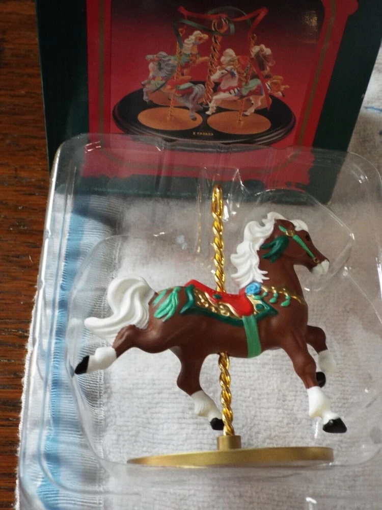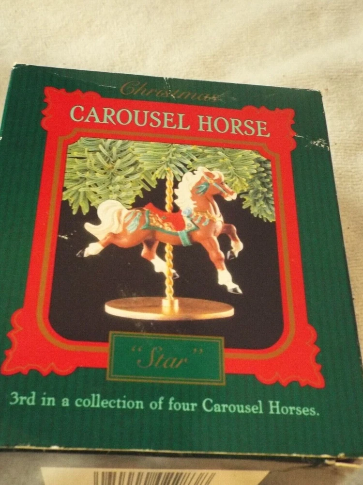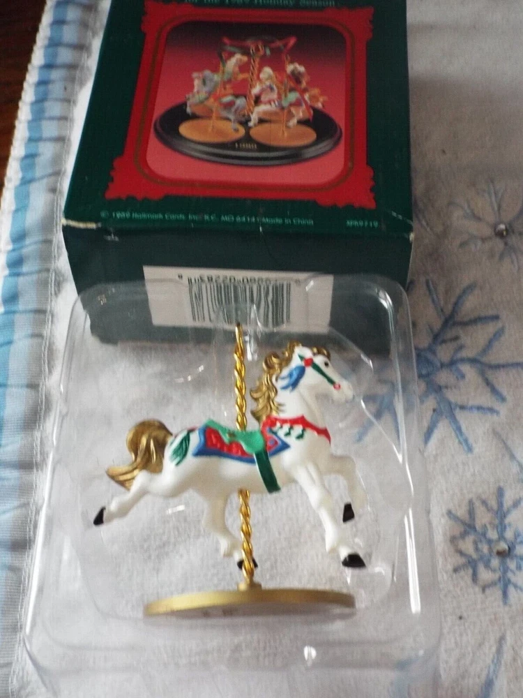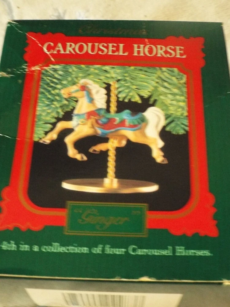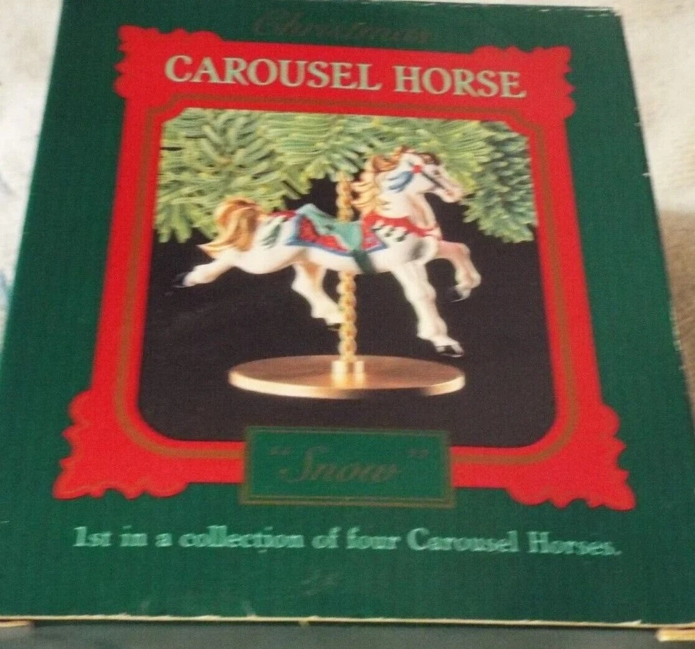 Christmas Carousel Horse 1989 Halmark: Horse's Star, Ginger, Snow, Holly. Nice set Buyer pays shipping ITEM # 2372H2