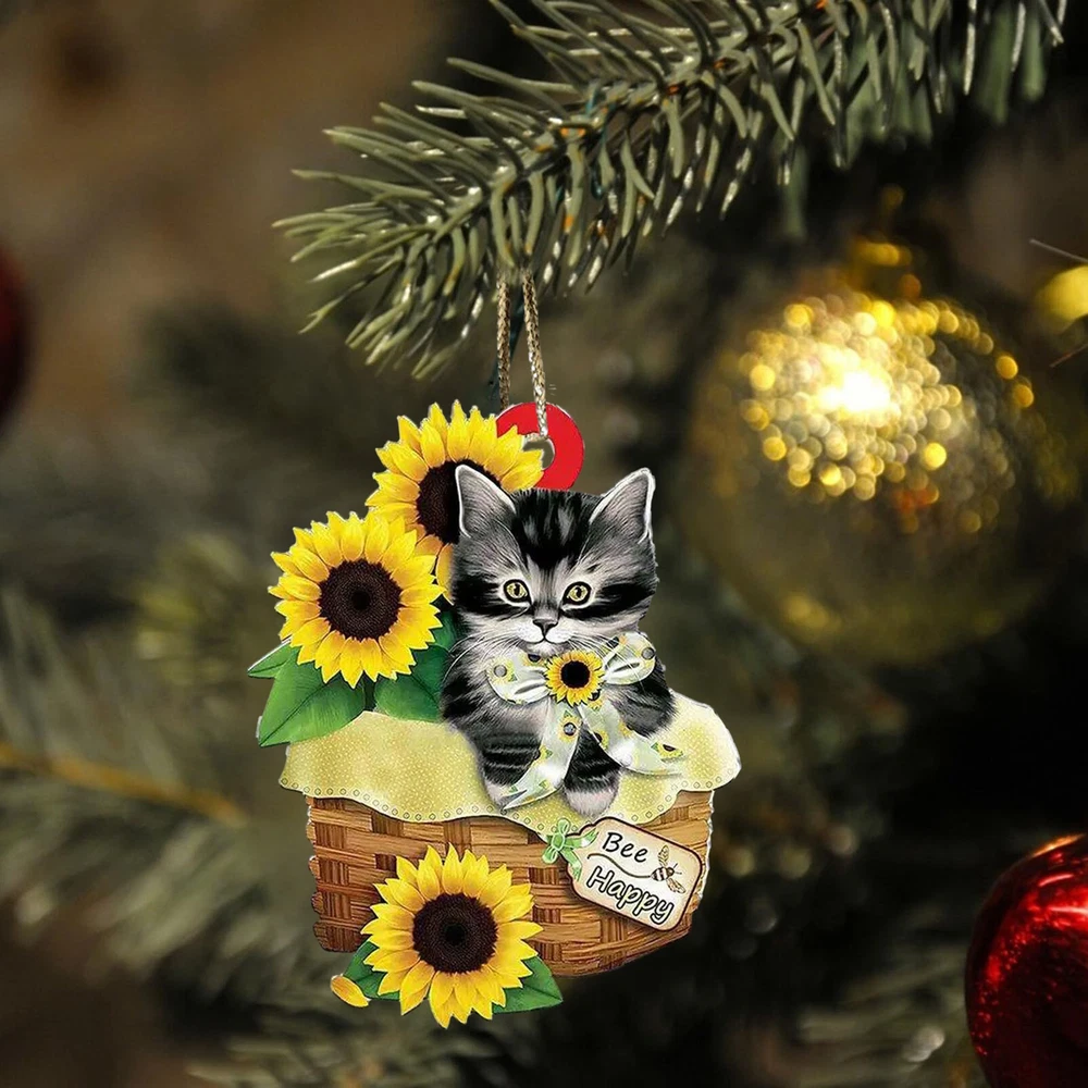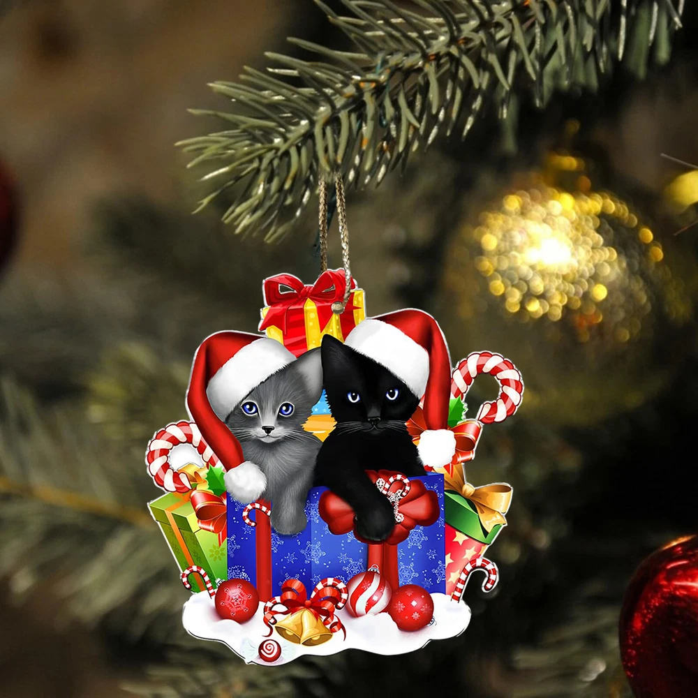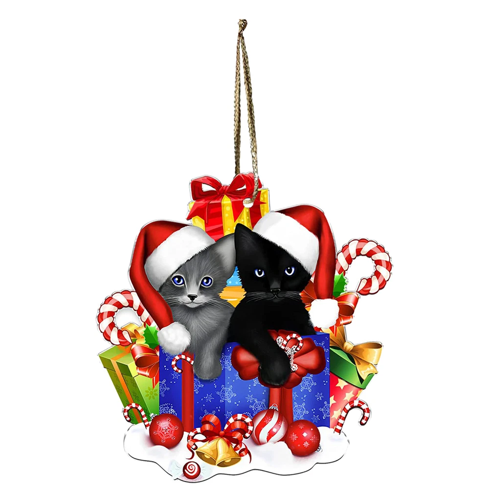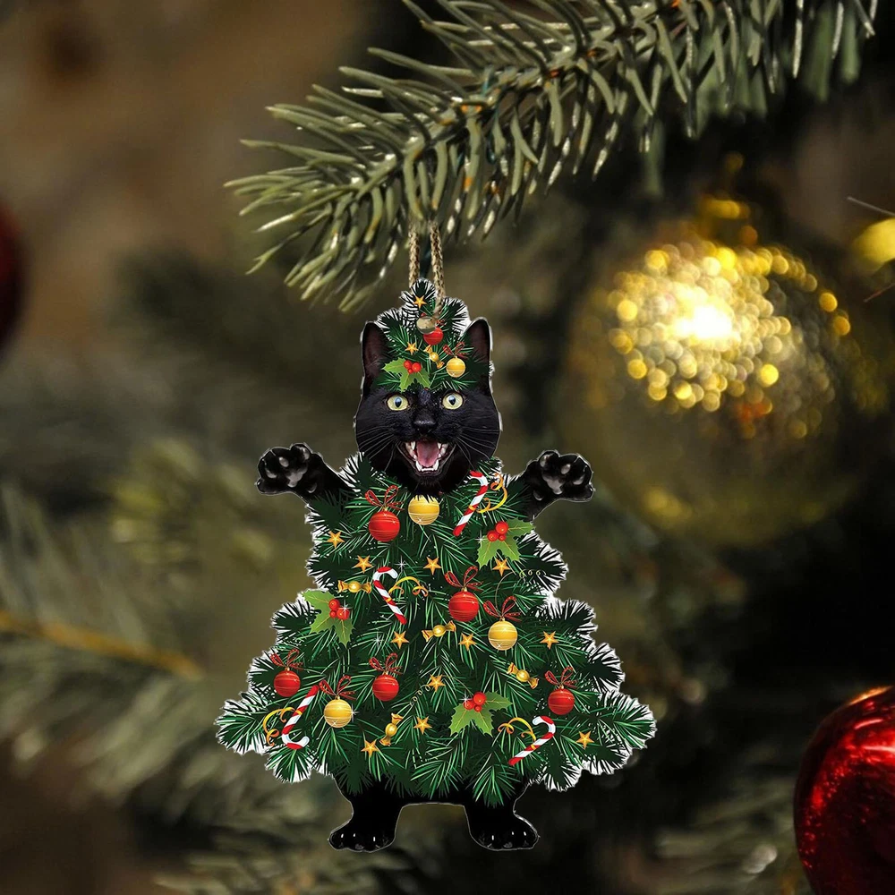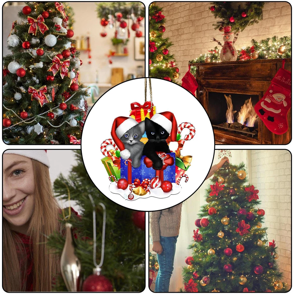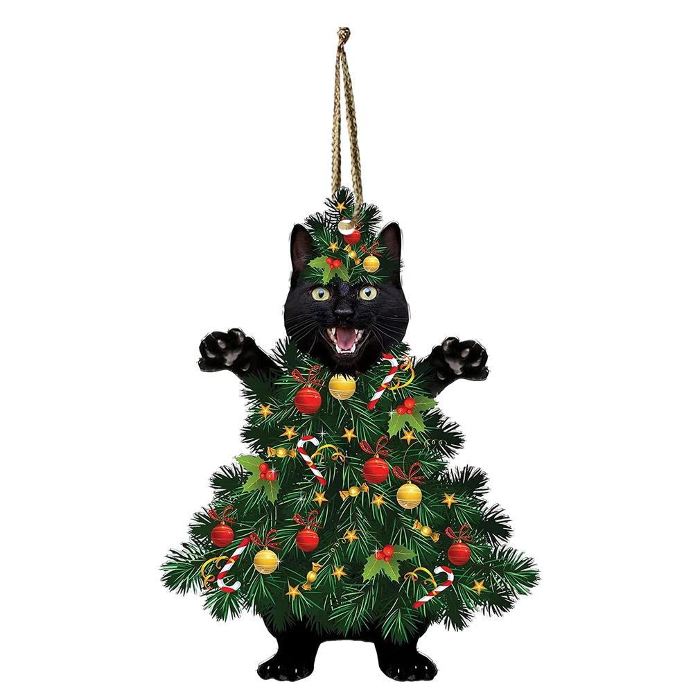 Christmas Cat Tree Ornament 2D Acrylic Holiday Decor Pendant Funny Cats Ornament