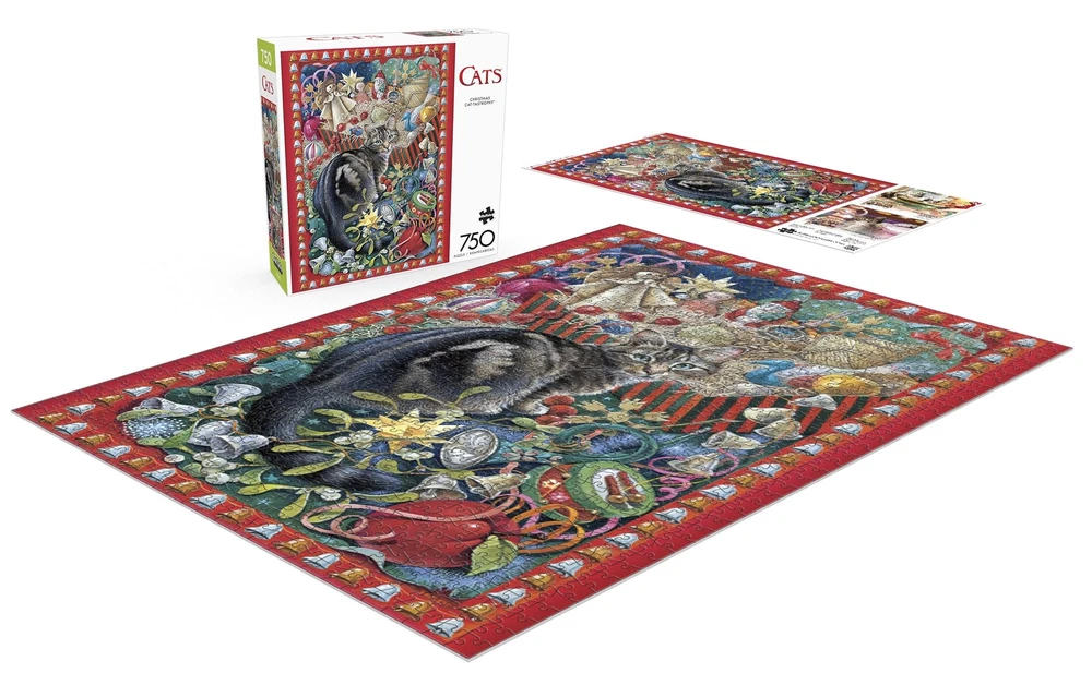 This 750-piece jigsaw puzzle, Christmas Cat-tastrophy, is part of the Cats Series by . The puzzle image features mischievous (but adorable) feline getting into the holiday decorations! Every jigsaw puzzle is manufactured from recycled puzzle board. A precision cutting technique guarantees that every piece will fit soundly with the company's signature Perfect Snap™. A bonus puzzle poster is also included so that you have a handy reference of what the completed puzzle should look like while you put yours together. 750 PIECE JIGSAW PUZZLE – This 750-piece jigsaw puzzle is the perfect level of challenge. Measuring 7.94in. x 7.94in., this puzzle is a great single evening activity for the entire family, friend group or yourself. For adults ages 14 and up. HIGHEST QUALITY MATERIALS – The puzzle pieces are thick and sturdy. Our high-quality dies ensure laser cut precision. APEX PUZZLE IMAGERY - Relax and enjoy the puzzling process while “traveling” to some of the most beautiful, bucket-list places, Or join in the fun with our portfolio of licensees, or finish in style with world renown artists. FULL COLOR BONUS POSTER - Every puzzle includes a full color poster to reference while assembling your puzzle. Or, for a real challenge, try to solve without the poster in hand! PERFECT GIFT - Puzzles are not only great gifts for any and all occasions including birthdays, holidays, housewarming parties or even just a fun night in with friends.
