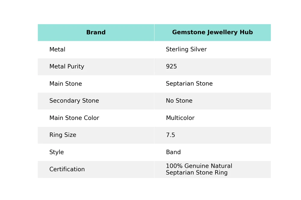 Welcome to Gemstone Treasure Hub Septarian Stone Gemstone 925 Sterling Silver Band Ring Size 7.5 For Women Handmade Ring, Sterling Silver Ring, Septarian Stone Ring, Handcrafted Ring SKU : MR-6495 Gemstone : Septarian Stone Stone Shape : As Seen In Picture Metal Purity : 925 Sterling Silver Ring Size : 7.5 US Adjustable : _________________________________________________________________ Shipping Handling - Charge - Free ( Condition apply ) Handling Time - One business day . Delivery Time - 3 to 23 Days ( Various on destination ) Postage service - (A.) India Post - Below $100 order which takes 11 to 23 days . (B.) USPS, Fedex, DHL , Aramax- Order above $100 which takes 3 to 7 days . _________________________________________________________________ Returns - 1. We provide a 100% Money Back Guarantee, excluding shipping costs, within 30 days from the date of item receipt. 2. The item must not be altered or damaged in any way shape or form. 3. Upon receiving these items your payment will be refunded. 4. Kindly reach out to us via email to obtain return instructions prior to initiating the return of merchandise. 5. Please allow up to 1 business day for all returns to receivecredit. 6. Sizing does not affect the return policy. _________________________________________________________________ Payment - We accept PayPal for Payment , should made within three days once buying or winning done , in case of late information expected . _________________________________________________________________ FAQ's - Q.(A) ARE THE ITEMS YOU ARE SELLING BRAND NEW? We exclusively offer brand-new products, refraining from the sale of pre-owned jewelry. Our entire jewelry collection is composed of 100% natural, conflict-free pieces. We do not engage in the trade of imitation or lab-grown gemstones and diamonds. Q.(B) WHAT ARE YOUR BUSINESS HOURS? Our business hours are Monday to Friday, 10:00AM to 6:00PM, excluding holidays. ________________________________________________________________ Gemstone Treasure Hub is dedicated to providing customers with exceptional handmade jewelry crafted to the highest standards of quality. We operate as both connoisseurs and manufacturers of artisanal jewelry, possessing a profound expertise in the art of elevating gemstones to perfectly align with any aesthetic preference. We are pleased to offer you the opportunity to create your own jewelry collection, adorned with authentic and exquisite natural gemstones. Our team of highly skilled artisans painstakingly crafts each individual jewelry piece, ensuring the creation of products with a unique identity that feature genuine gemstones. The jewelry articles presented on our website accurately depict the precise pieces that you will receive.