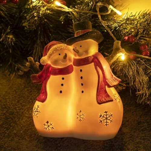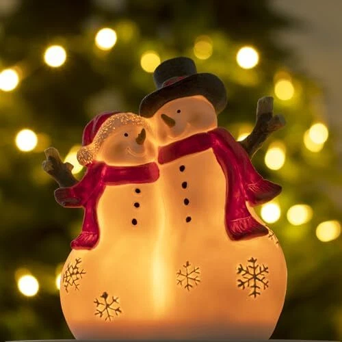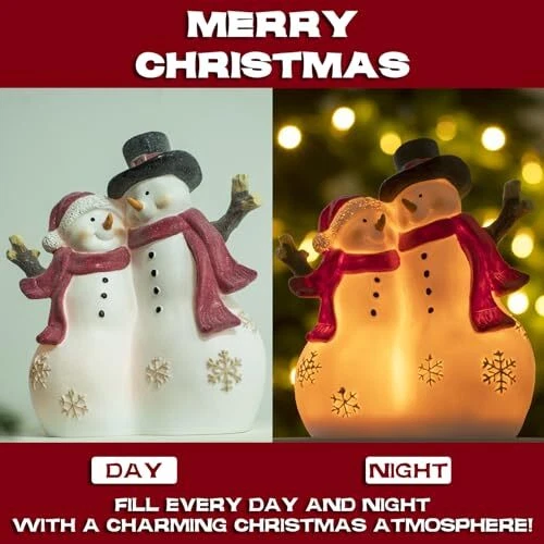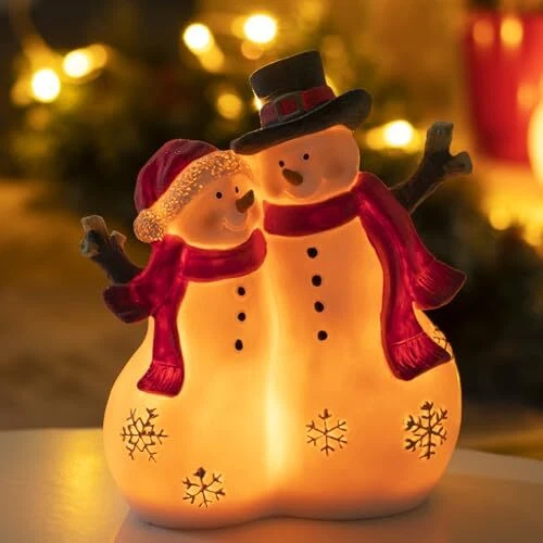 Christmas Decor Snowman Figurines Resin Lighted Indoor Ornaments Snowman Couple