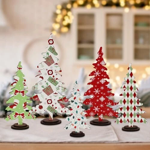 30 Days Return Policy Fast Delivery Trusted seller Christmas Decorations - 5PCS Wooden Christmas Tree Tabletop Decor Sign - Rustic Decorative Freestanding Christmas Tree Centerpiece for Home Shelf Mantel Product Description Enchanting Christmas Scenes -- Transform your space into a joyful wonderland with our wooden Christmas trees which can be put together as a set or divide up during the fun holiday. Exquisite Craftsmanship -- The pack includes 5 intricately designed Christmas classic-style wooden trees in 4 sizes. Slotted base allows the trees to stand securely which makes them easy to store away or future use. Premium Quality -- Made of real wood material, these christmas table centerpieces stand out with exceptional creativity, vibrant patterns, and quality craftsmanship for a perfect seasonal look. Versatile Holiday Touch-- Elevate your holiday decor with chic Christmas centerpieces that effortlessly enhance your mantel, shelves, window ledges, tabletops, etc, or a fun stocking stuffer. Happy Holiday! -- Let the vintage Xmas accents bring a glint of warmth to festive occasions. Share the holiday spirit with family and friends as these charming decorations spread Christmas cheer throughout your home. Shipping Returns Payment Shipping Shipping is FREE to all addresses other than APO/PO boxes in the lower 48 states. All our stock ships from US-based warehouses. Shipped via USPS or UPS (depending on location and package weight) Unless stated otherwise, all orders will ship within 24-72 hours of your payment being processed. Check our feedback to see the great reviews of FAST shipping we offer. Returns As our valued customer, we will do our best to make sure the product you receive arrives to you on time and as expected. If you are not satisfied with your purchase, please contact us within 30 days of receiving your order to process a return. Payment We currently accept payment via eBay managed payments only. Once payment is cleared, we will dispatch your shipment within 1-3 business days. Please refer to the "Shipping" tab for more information regarding shipping speed to your destination.