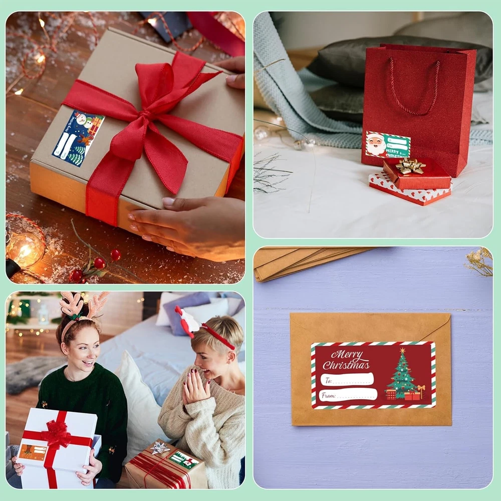 Christmas wrapping paper - Christmas Gift Tags - Gift tags for Xmas presents Gift Tags for Christmas Presents: Transform your Christmas presents with our set of 500 festive Christmas gift tags, featuring a wide variety of designs to enhance your holiday gifting experience. Perfect for adding a touch of charm to your gifts wrapped in classic or modern Christmas-themed paper. Versatile and Stylish: Our Christmas gift tags are more than just labels; they are versatile accessories crafted from premium materials. These self-adhesive tags effortlessly adhere to gift wrap, gift bags, or even personalized ornaments, ensuring a seamless and elegant presentation for all your holiday gifts. Time-Saving Solution: Bid farewell to the tedious task of tying ribbons or dealing with intricate wrapping. Our Christmas gift tags offer the convenience of self-adhesive backing, making the gift-wrapping process swift and hassle-free. Spend less time on wrapping and more time enjoying the festive season with your loved ones. Personalized Expression: Make each gift special with our Christmas name tags stickers included in the set. Whether you're tagging gifts for teens, men, women, or kids, these tags provide an easy and stylish way to address each gift uniquely. Leave a lasting impression with personalized holiday gifts tailored to each recipient. Comprehensive Festive Pack: With a generous pack of 500 Christmas gift tags, you'll have an abundance of tags for all your holiday gifts and cards. Whether you're preparing gifts for friends, family, or colleagues, this set ensures you're well-equipped to spread joy and cheer during the holiday season.