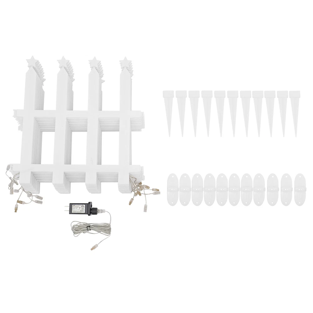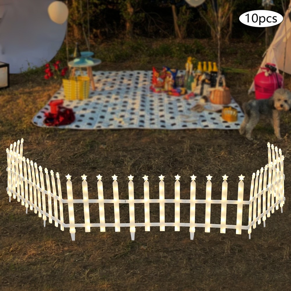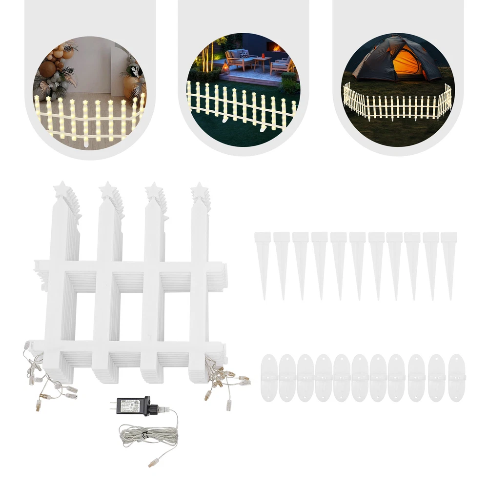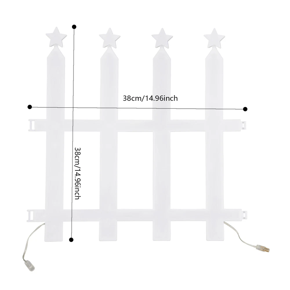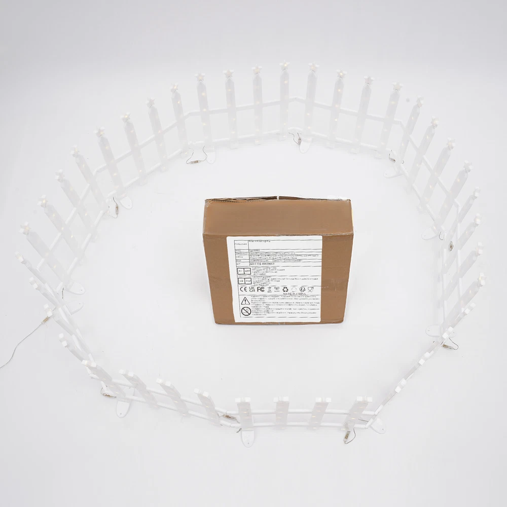 Christmas Decorations Light 10Pcs Holiday Christmas Fence Lights Holiday Lights Description Description This fence light is made of premium PP material, offering excellent durability and capable of withstanding outdoor conditions. Its unique fence shape design not only makes the product more three-dimensional and vivid but also seems to transport you into a fairy tale world, adding a dreamy atmosphere. This set includes 10 fence panels, which can be freely combined according to your needs, catering to various decorative scenarios. Choose this product to add a touch of romance and beauty to your holidays! Key Features Build to Last: This product is made from superior PP material with an injection molding process, featuring waterproof (IP65 level), abrasion-resistant, and weather-resistant properties. It is not easily deformed and can adapt to both indoor and outdoor environments. Energy-saving: This product uses an energy-efficient LED light source and has a long lifespan, and the low-voltage plug design ensures stable and lasting lighting performance. Two Lighting Modes : It supports both flashing and steady-on modes, meeting the needs of different scenarios. Whether it's for daily relaxation or festive celebrations, it can create a romantic atmosphere. Dual Installation Method : You can choose to install the base by placing it or use ground pegs to secure it to the ground, flexibly adapting to different usage scenarios. Thoughtful Design : The package contains 10 fence panels, which can be freely combined into different shapes (such as circular or three-sided fences) according to your needs, meeting personalized decoration requirements. Exquisite Appearance : The classic white and unique fence-shaped design with star decorations on the top enhances the spatial layer sense, creating a tranquil and elegant atmosphere, suitable for Christmas decorations or other festive scenes. Ideal Gift : The exquisite appearance and outstanding decorative effect make it an excellent gift for family, friends, and colleagues. Buy with Confidence: We stand behind all our guests and look forward to assisting you with your purchase. It is our pleasure to answer your confusion and questions. The end of the story between us is not "we sell and you buy." Details Smooth Edges : The edges are designed smoothly, not only enhancing aesthetics but also improving safety. Snap-on Connection: This design makes panel connections simple and quick, allowing for flexible combinations and layouts. Application It is a stunning decoration for a Christmas tree to create a festive atmosphere for special events and can be used as a garden boundary and a practical barrier to protect flower beds from animal damage. It is ideal for restaurants, hotels, clothing stores, and flower shops. Specifications Color: White Style: Modern Material: PP Process: Injection Molding Indoor/Outdoor Usage: Outdoor, Indoor Mount Type: Placement, Ground Plug-in Assembly Required: Yes Number of Pieces: 10 Plug Type: US Standard LED Controller Input Voltage: 120V, 60Hz LED Controller Output Voltage: 18V Power: 6W Light Sources: 240* LEDs Lighting Modes: Flash, Steady on Light Color: Warm Waterproof Rate: IP65 Lead Wire Length: About 5m/16.4ft(Error: Within 5cm/1.97in) Each Panel Size(L*H): 38*38cm/14.96*14.96in Package Size: 41.5*39.5*13cm/16.34*15.55*5.12in Gross Weight: 3kg/6.61 lbs Net Weight: 2.85kg/6.28 lbs Package Included 10* Fence Lights 1* LED Controller All Accessories for Installation Notes Please check the product size before ordering to make sure it fits your needs. The panel height does not include the height of the base and the ground pegs. Please ensure that the soil is soft and not hard to insert to avoid damage to the insertion point. Please allow the slight color difference caused by the shooting light and 1-3cm error due to manual measurement, and make sure you do not mind before you order. Payment Delivery details Terms of sales About us Contact us Payment We accept ebay payment 。 Fees such as import duties, taxes are not included in the item price or shipping costs. These charges are the buyer's responsibility. Delivery details Shipping: 2-9 working days to: USA Terms of sales We maintain high standards of excellence and strive for hundred percent customer satisfaction. Feedback is very important to us. We hope that you contact us immediately before you give neutral or negative feedback, so that we can address your concerns. It is impossible to address issues if we do not know about them! About us Your satis faction is our ultimate goal. We work hard to earn your trust and future business. Our certified technicians have tested each item before shipping. The unit comes with 1 year limited warranty on all manufacturing defects. a) If you receive a defective item, you may return it or ask for a discount. Please contact us within 14 days after you receive the package. b) What you returned must be intact and in its original packaging as re? u. Customer is responsible for shipping costs of the returned item. c) We will cover the cost of shipping back t with the shipping rate indicated in the registration page. We will send you a new unit or refund the full payment you paid. Thank you. Contact us Business Hour Business Hour: Monday To Friday: 8:30 AM to 5:00 PM (Beijing China time) Due to time zones, our reply to your questions may not be immediately. But within above working time, we will reply your email within 24 hours. If it's non-workdays, please kindly be patient and wait till Monday. Please contact us with ebay message. Please feel free to contact us if you have any questions. Monday To Friday: 8:30 AM to 5:00 PM (Beijing China time) Due to time zones, our reply to your questions may not be immediately. But within above working time, we will reply your email within 24 hours. If it's non-workdays, please kindly be patient and wait till Monday. Please contact us with ebay message. Please feel free to contact us if you have any ques