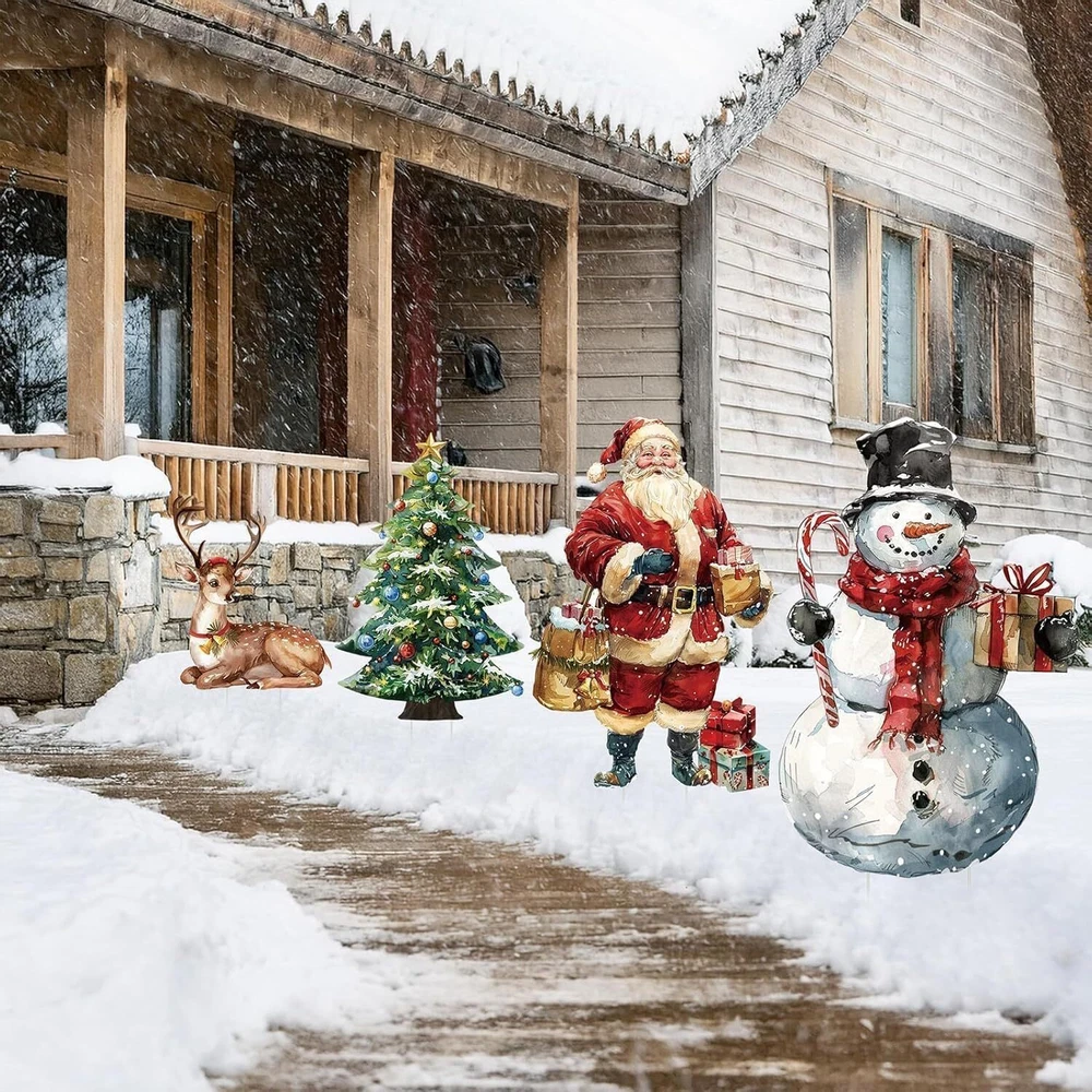 Christmas Decorations Outdoor: 4Pcs Xmas Tree Santa Claus Snowman Reindeer outsi