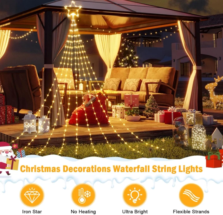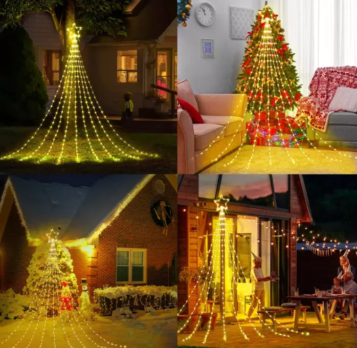 Christmas Decorations Star String Lights 344 LED 11.8ft 9 Strands Waterfall Tree