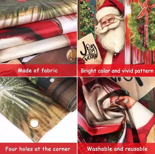 Christmas Door Decorations Christmas Door Cover Christmas Door Banner Christmas US Warehouse - FREE & FAST Shipping in USA Product Description: Package Includes: you will get 1 piece of Christmas window door cover, measures approximately 35.4 x 72.8 inches, coming with coming with 16.4ft white rope and foam sticker for using. This Xmas Banner Decoration is so large that can grab everyone's attention at your party. suitable for decorating Christmas parties, Christmas Eve, New Year or other winter holiday parties, and you can take photos with your friends and family in front of the door cover decoration.etc. Funny Christmas Design: The Christmas background cover depicts a vivid scene, which is very interesting and warm, bringing more joy to your party and home High Quality Material: This large banner backdrop door cover is made of premium polyester fabric, durable and fine workmanship,soft and lightweight,which is reusable and washable, can last for a long time and never fade or break out. You can hang up anywhere you want. Easy to hang up: There are 4 sturdy copper holes on the corner of the Christmas Santa door cover decoration, so you just need to string the round holes with matching ropes and hang them anywhere you want to decorate, creating ainteresting atmosphere. Your guests will like the way you welcome them to join the Christmas party Wide Application: Suitable for Christmas party, Christmas Eve, New Year, celebration and winter theme parties, Can be hung at front door, wall, doorways halls, windows, gardens and so on Feedback: 1.Any question for your order, please contact us in time, we will reply to you within 24-48 hours and give you a satisfactory answer. 2.If you are satisfied with our products and services, hope to take up a little precious time to leave feedback reviews for our products.Thanks! 3.Your satisfaction is our effort. Welcome to order again! Have a great day! Our Policy: 100% Satisfaction Guarantee 30 Days Return and Refund Guarantee Free and Fast Shipping in USA, US Warehouse 15% of restocking fee will be charged for return it