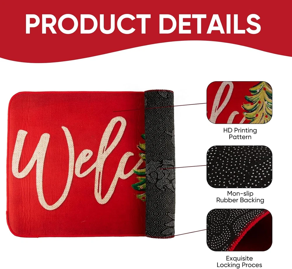 Store New Arrivals Add to Favorite View Feedback Contact Fast deliveries to the customer's home Quality customer service John Make the customers happy! Christmas Door Mat,Christmas Front Door Mat,Exquisite Christmas Rugs,Holiday Door Mat for Front Porch Outdoor Indoor Entrance17X29 Inch (Red) Description 【Christmas Design】 The Christmas door mat is designed with Christmas tree, reindeer and other elements. The meticulous design creates a wonderful festive atmosphere for you. Specially designed as indoor and outdoor decoration for the holidays 【Perfect Size】 Our merry christmas door mat measures 29 inches x 17 inches, ideal for entrance and exit passages, ensuring a perfect fit. It's the perfect addition to any doorway 【High-Quality Material】 Made of premium polyester felt and non-slip backing, our christmas mats for front door has clear patterns and is durable enough to withstand long-term use. Accompany you through a perfect holiday and is the quality for your home 【Easy to Clean】Door mats are frequently used. When you want to clean the mat, you can wipe the stains on the mat with a damp cloth or directly wash it with a hose. These two methods will not cause the surface of the mat to fade. You can use it with confidence 【 Perfect Gift】Our door mat can be a wonderful gift. Surprise your friends and family with this unique Christmas present,If you have questions about the product, you can contact us and have a great Christmas Product Description Item Shape Oblong Weave Type Braided Model Name Christmas Front Door Mat-A Color Red Pattern Letter Print Material 5% Polyester, 95% Rubber Is Electric No Item Weight 8 ounces Pile Height Low Pile Construction Type Machine Made Back Material Type Rubber Rug Form Type Doormat Item Dimensions L x W 29"L x 17"W ABOUT US We offer the best prices around on high quality products. Our E-store includes media such as books, movies, music and games while offering electronics, toys, sporting apparel, clothing, tools, general home, garden items and more. SHIPPING We are always working hard to ensure your package arrives as soon as possible. Please understand that some factors like weather, high postal traffic, and the performance of shipping companies are outside of our control. We offer free shipping to the lower 48 states and ship within 2 business days of payment, usually sooner. We do not accept P.O. Boxes. Please provide a physical address. For shipping outside of the continental USA, we only use eBay's Global Shipping Program. The item is shipped to KY and then sent to the rest of the world. International customers are responsible for all duties and taxes. Continue to 'check out' to calculate costs for shipping the item to your country. Messages regarding eBay's Global Shipping Program MUST be directed at eBay EXCLUSIVELY. RETURNS We offer a 30-Day Return Policy on items in which you are not completely satisfied with. You have the option of a full-refund or an exchange of the item. No returns are available on items shipped outside of the USA PAYMENT We accept PayPal. CONTACT US This page content is yet to come Please ad us to your favorite seller and visit again later Thank You CUSTOMER SATISFACTION We try our very best to make sure every customer is completely satisfied. If there's a problem, message us! We're happy to help. WE ACCEPT
