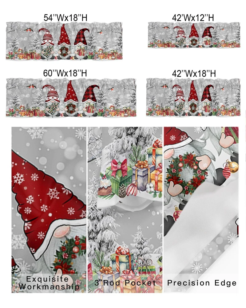 Mindful Workmanship Our valance curtains are made of durable polyester blended fabric, which is moderately soft and can maintain a certain profile. It is undoubtedly an ideal choice for window decoration. In addition, the 3-inch wide rod pocket is more convenient and flexible to apply to more sizes of windows than the grommet valance drapes. Moreover, when decorating your windows, the top rod pocket can make the valances wavy folds to create more elegant and inviting beauty. All-match Home Decoration The printing of the window valance curtain adopts high-definition printing, full color and vivid pattern, which upgrade your home decoration for easily. Whether your home style is farmhouse/farm, country/rustic, modern, , French or Nordic style, this stylish tier curtains can complement it. Valance curtains can also be holiday decorations to increase the atmosphere on important festivals such as Fall, Thanksgiving, Halloween, Christmas, and New Year. Unexpected Big funtion Window scarf valances can block the glare light of the morning sun. When you are busy in the kitchen, the short window curtain can not only filter the annoying sunlight from overhead, but also allow you to enjoy the scenery outside the window or the children playing figure. Of course, it cannot be ignored that valances will also protect your furniture from fading and cracking caused by long-term exposure to ultraviolet rays. 100% satisfied service We believe that this window treatment will improve your quality of life. If you have any dissatisfaction, please do not hesitate to us, your needs are our pursuit!" Standard Size and Rod Pocket: Package includes 1 window valance curtain - 42"W x 12"L (about 107 x 30 cm). There is a 3 inches rod pocket on the top, which can accommodate most standard curtain rods. Valances for windows is easy to hang, convenient rod pocket design allows you to install the curtains quickly. Stylish Design: Window valance are good holiday decorations in autumn, Halloween, Thanksgiving, Christmas, to add atmosphere to important festivals. Attractive and chic patterns complement various decorative styles such as farmhouse, country, modern and . Kitchen valance supports customized design, choose a curtain valance that is exclusive to you to adding a touch of bright color to your home decoration. High Quality Material: Curtains valance are made of polyester fabric, the quality of short curtains is guaranteed, soft and durable, not easy to fade even after long time use. Window valances are perfect match with long curtain drapes, which both practical and beautiful (you can consult us about matching curtain styles). Various Occasions: The elegant window treatments not only match the kitchen, but also very suitable for the living room, bathroom, bedroom, cabinet, study room, basement, RV camper, nursery, and girl's room. Provide a nice and inexpensive way to add eye-catching charm to your windows or rooms. Machine Washable: Our kitchen valances is easy to maintain, machine washable in cold water, ironing when needed. If you have any questions about this valance for window, please us, we will reply you within 24 hours!