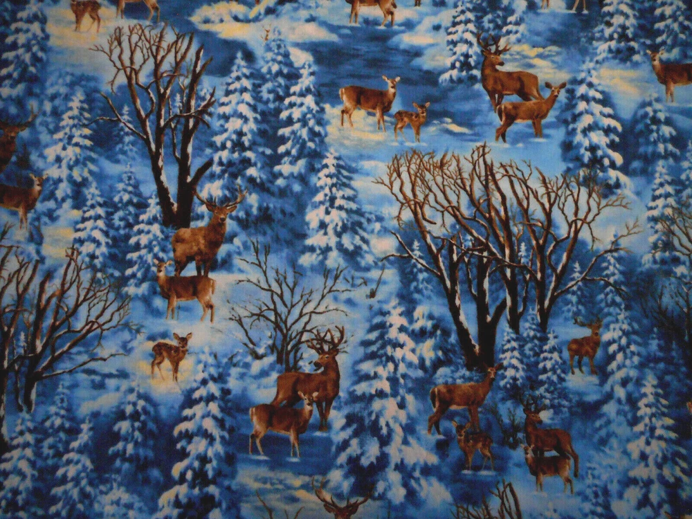 This is a very nice fabric that is 100% cotton. This a premium quilting cotton by Timeless Treasures. It has deer families in snow at night with trees & snowy pine trees on a mainly blue background. READ: Because computer monitors show colors and shades differently, the fabric colors can vary from the photos. If you have any questions regarding this, please contact me before p urchasing the item. I have been a quilter for 30 years and am an accomplished seamstress & would be happy to answer any questions you might have. This is for a 1 1/4 Yard of Fabric. If you have a problem with anything you purchase from me, please contact me before leaving neutral or negative feedback and I will work it out with you. Payment is due within 48 hours. If payment isn't received within 5 days, it will automatically go to Ebay's resolution center for non-payment. INSTRUCTIONS FOR COMBINED SHIPPING: I Do combine shipping. You must put your items into your shopping cart and request an invoice from me using the request total button before completing the payment process. IF YOU'RE UNABLE TO COMBINE YOUR SHIPPING, PLEASE CONTACT ME. Payment is due upon receipt of your invoice. Thank you for looking and God bless you and your family. IF THERE IS A PROBLEM WITH ANY PURCHASE, PLEASE CONTACT ME, THE SELLER, VIA EBAY'S MESSAGING SYSTEM PRIOR TO OPENING A CASE--OPENING A CASE, EVEN IF RESOLVED SMOOTHLY, CAN HURT THE SELLER'S RATINGS. THANK YOU